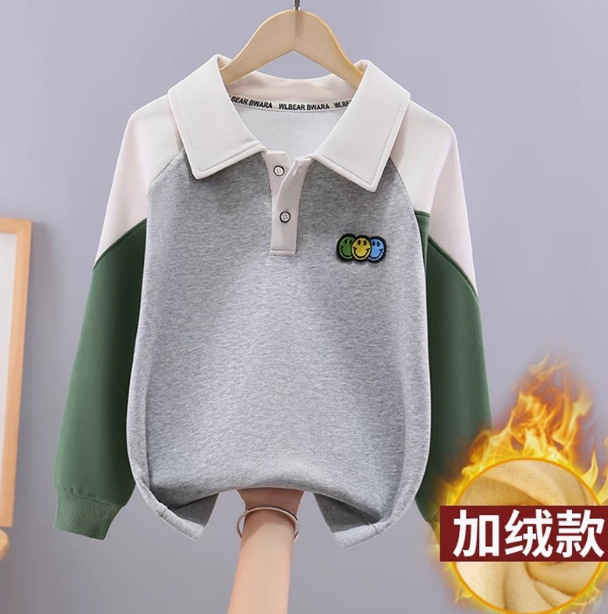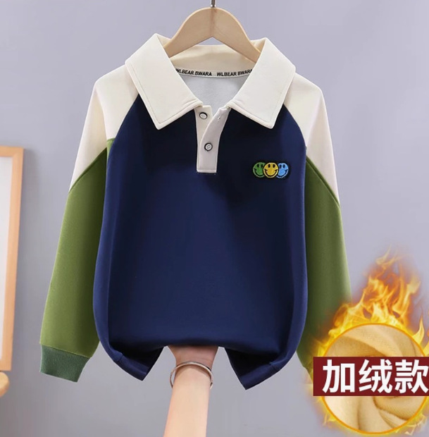 소년 스웨트 셔츠 컬러 블록 옷깃 어린이 폴로 칼라 탑 봄과 가을 옷 유행 큰 어린이 서양식 소년 티셔츠 옷스토어 가기