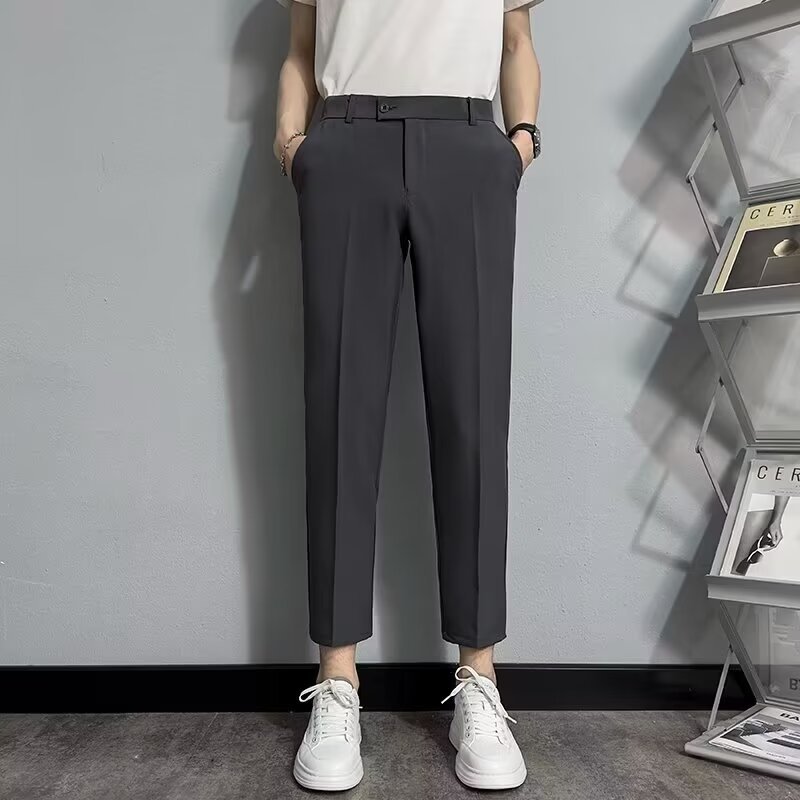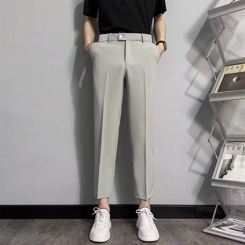 비즈니스 캐주얼 소형 바지 남성용 슬림 핏 작은 다리 더미 스트레이트 바지 유행 가을 새 세트 자른 바지 남성