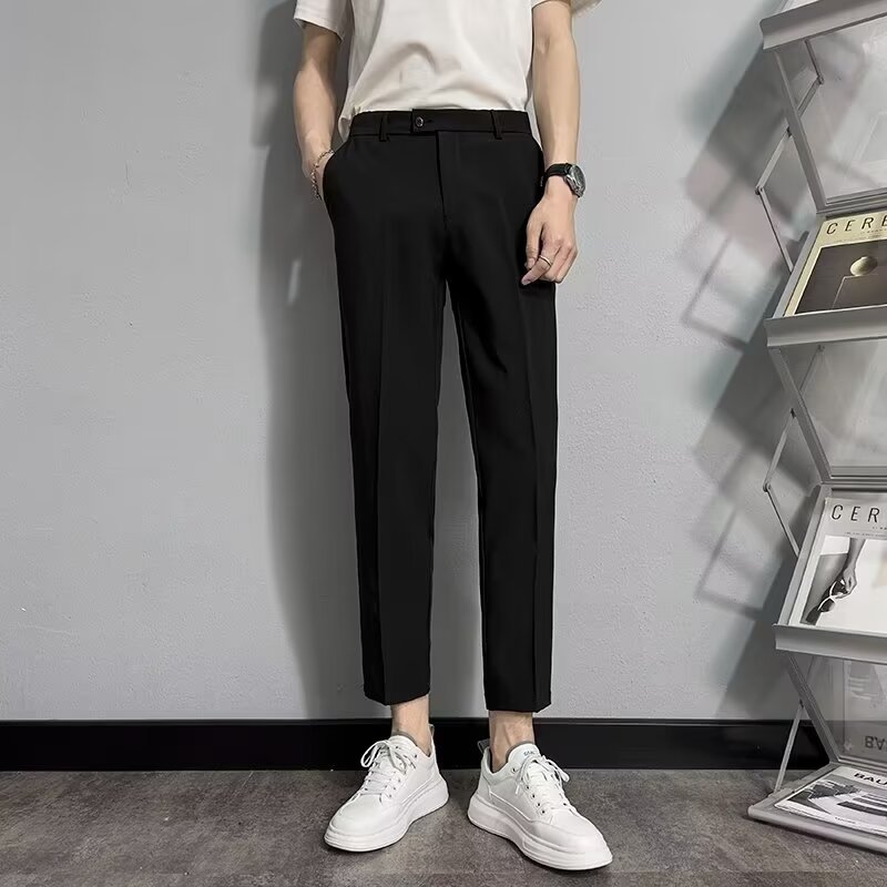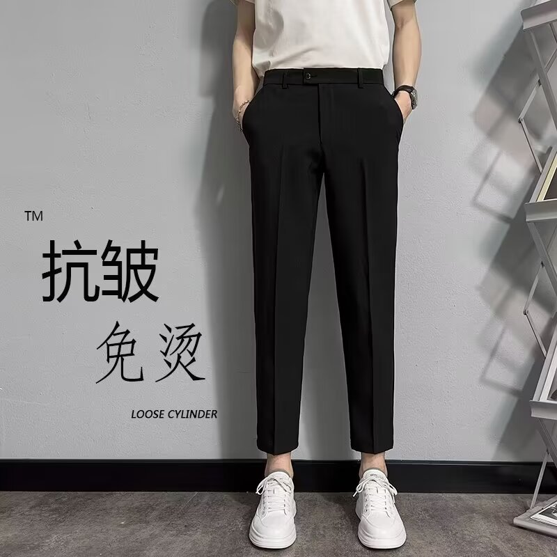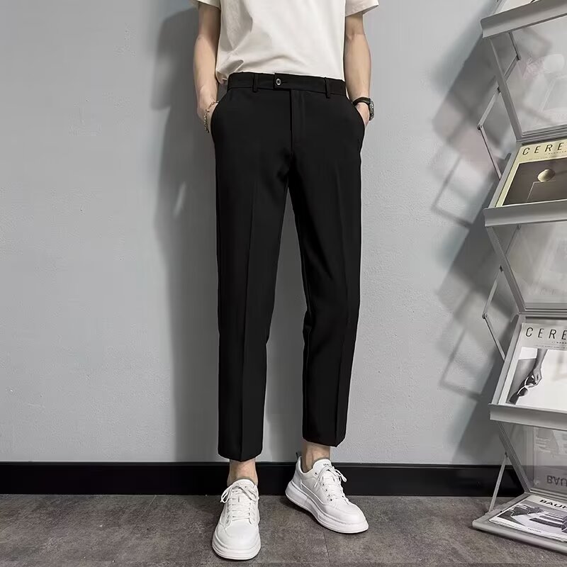 비즈니스 캐주얼 소형 바지 남성용 슬림 핏 작은 다리 더미 스트레이트 바지 유행 가을 새 세트 자른 바지 남성스토어 가기