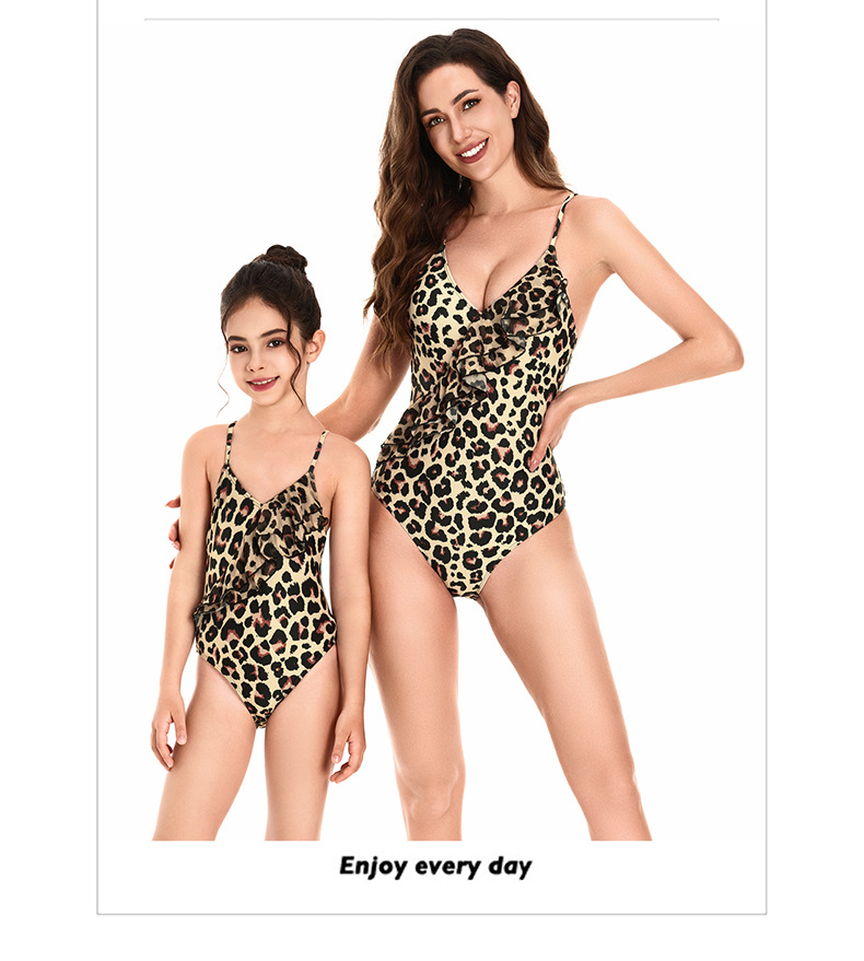 유럽과 미국의 부모-자식 수영복 가족 새 엄마와 딸 비치 바지 찔린 허리 수영복 도매 레오파드 무늬
