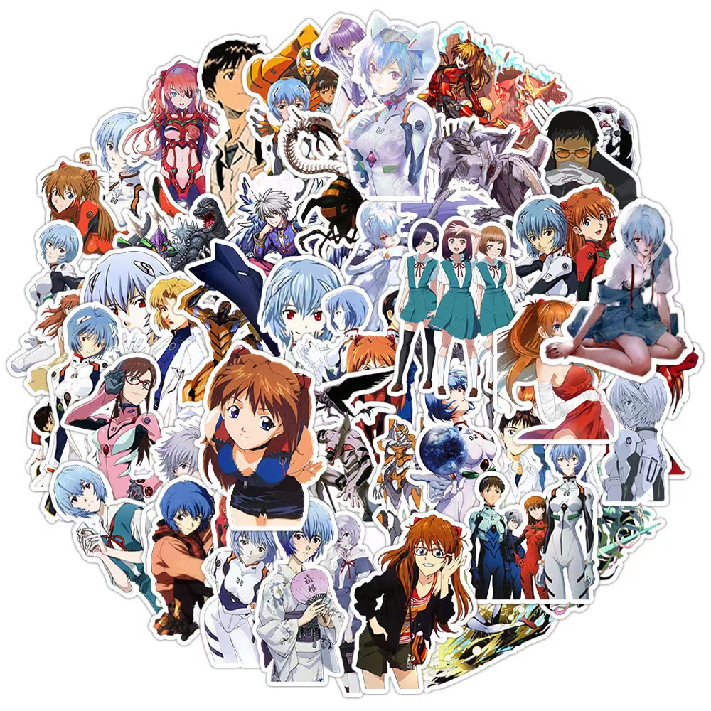 50 새로운 복음 전사 만화 문구 스티커 방수 문구 스케이트 보드 물 컵 스티커 도매 국경