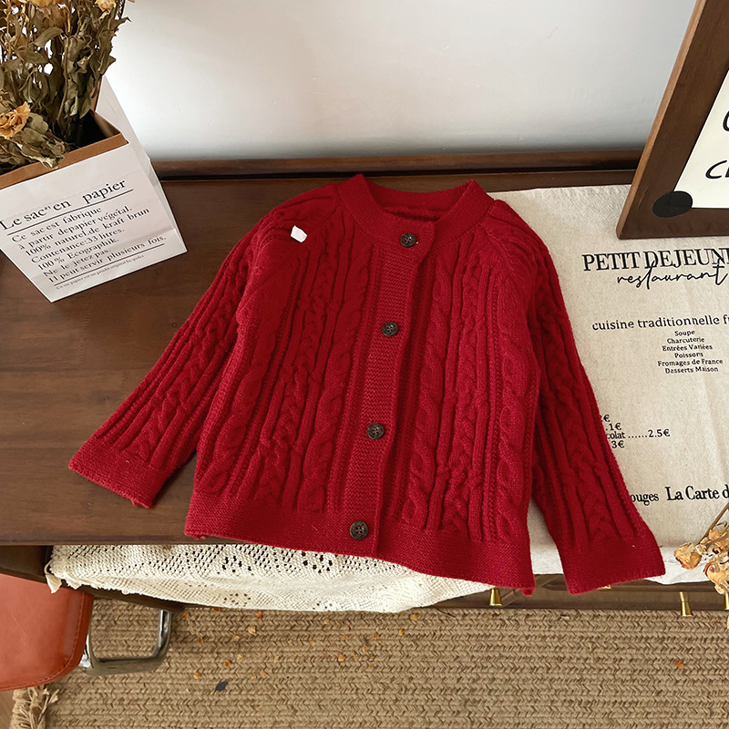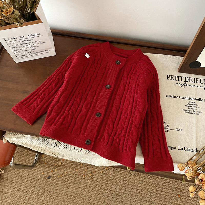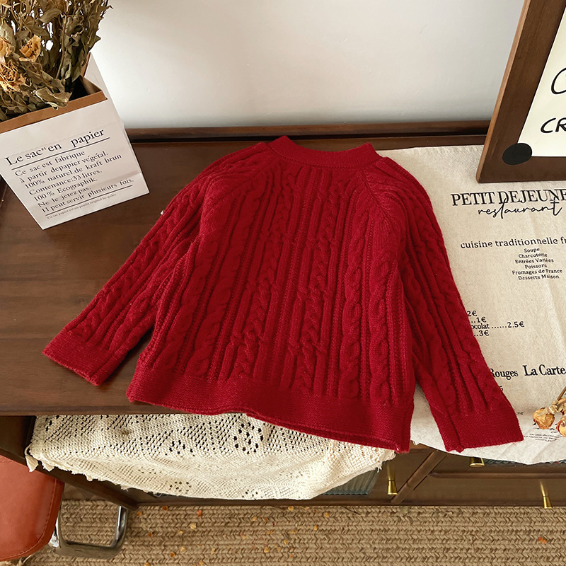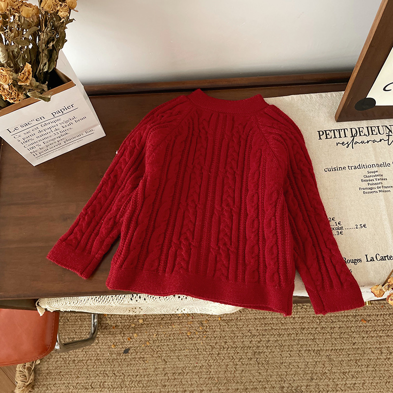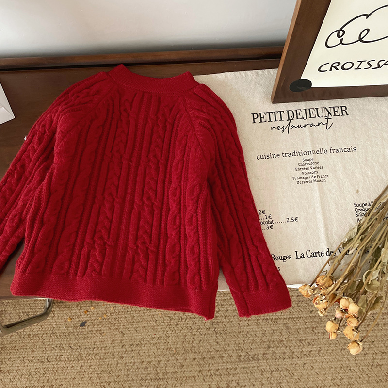 [재고] DY248300 어린이 스웨터 2024 가을 새 게으른 조커 트위스트 레드 니트 탑스토어 가기