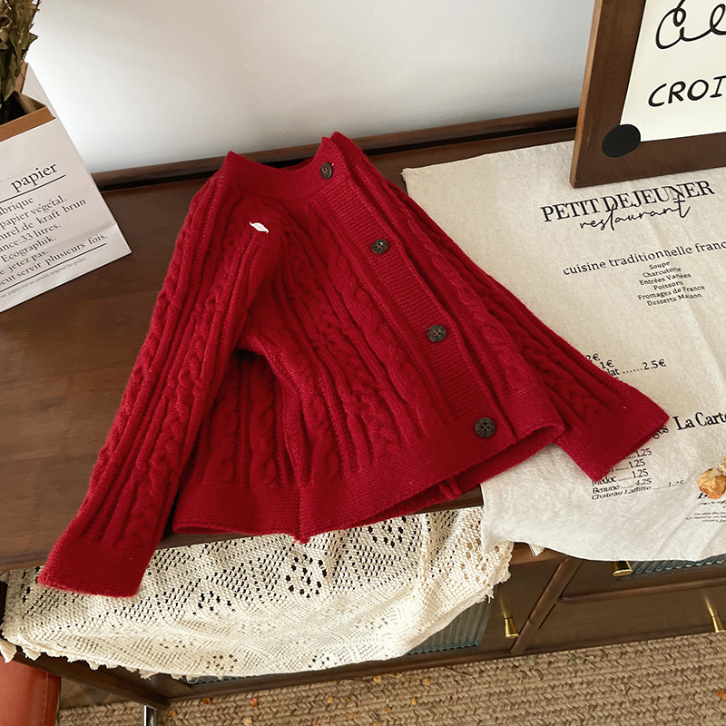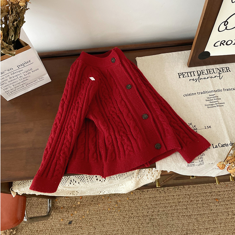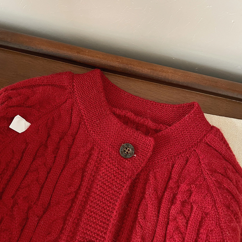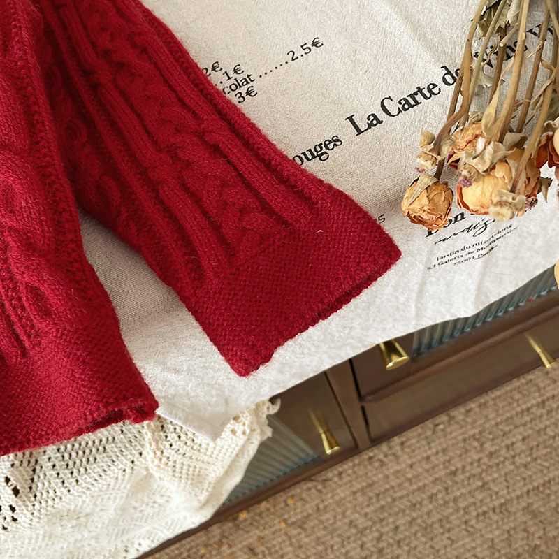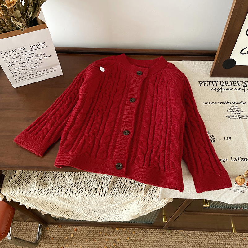 [재고] DY248300 어린이 스웨터 2024 가을 새 게으른 조커 트위스트 레드 니트 탑스토어 가기