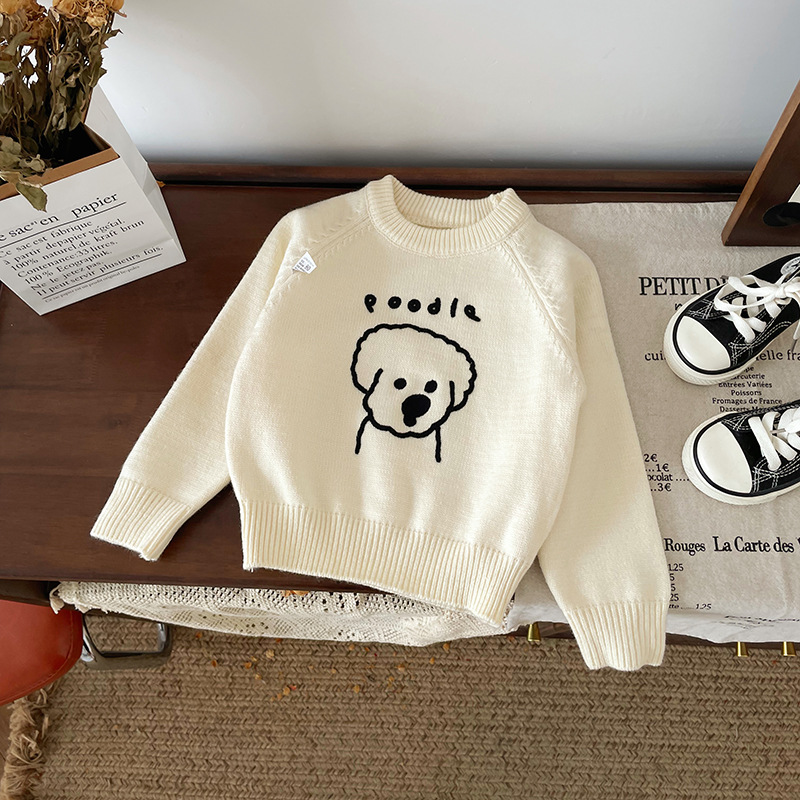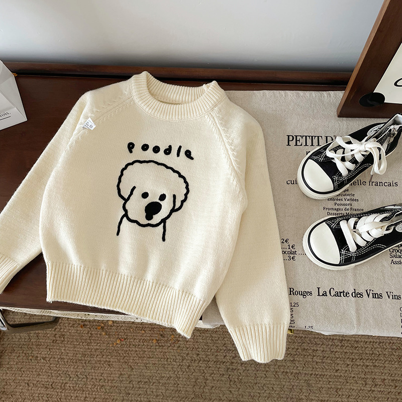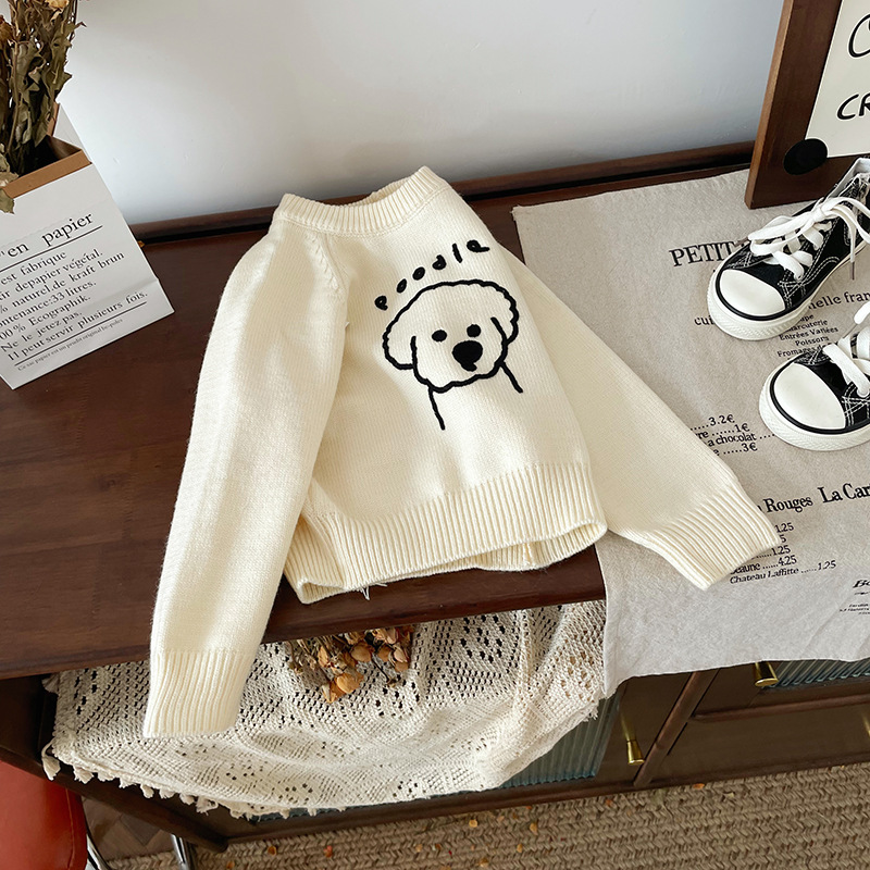 [재고] QY248430 어린이 스웨터 2024 가을 새로운 한국 만화 강아지 스웨터