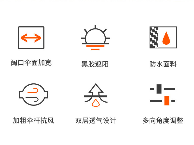 • 6세대 목발우산 [업그레이드 및 경화 + 전체 스테인레스 스틸 + 원버튼 시작] 블랙 오렌지 2.0m