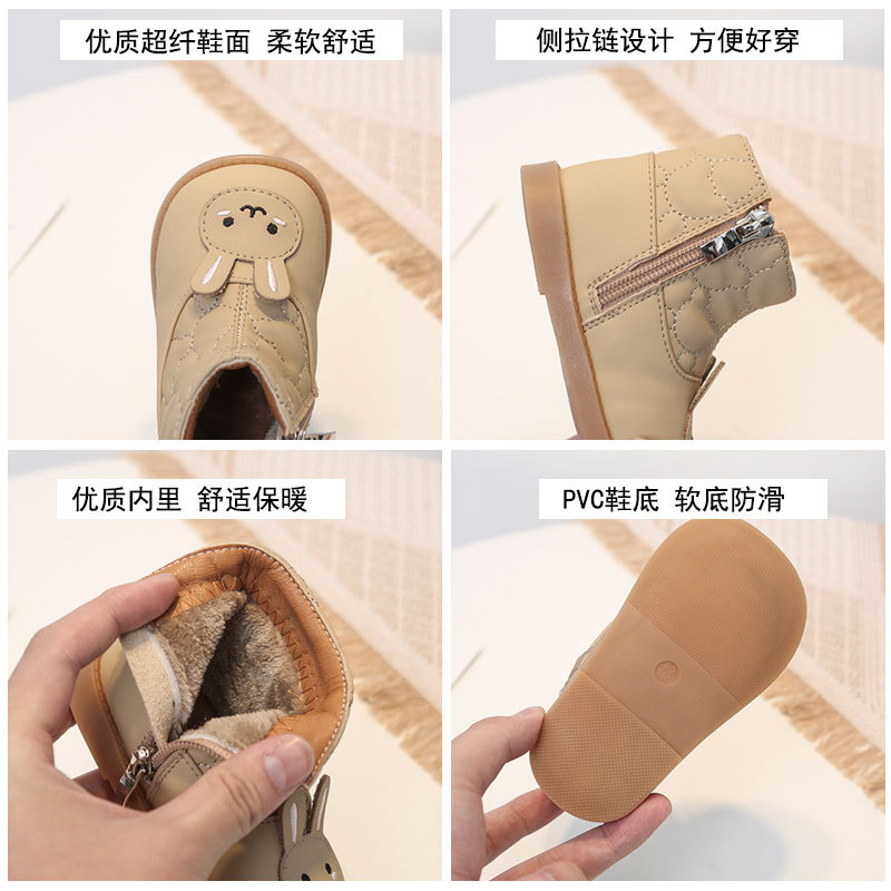 겨울 새로운 어린이 패션 부츠 미끄럼 방지 소녀 부츠 올매치 가죽 부츠 소녀 귀여운 토끼 편안한 부드러운 바닥 발목 부츠스토어 가기