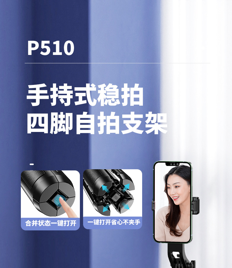 P510 국경 간 휴대 전화 셀카 스틱 네 다리 라이브 방송 스탠드 카메라 아티팩트 개폐식 확장 스틱 휴대 전화 셀카 스틱스토어 가기
