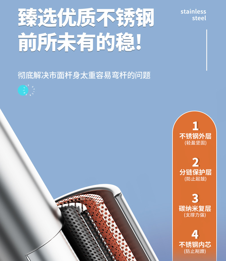 • P510-V1 스테인레스 스틸 휴대폰 셀카봉/단일 조명