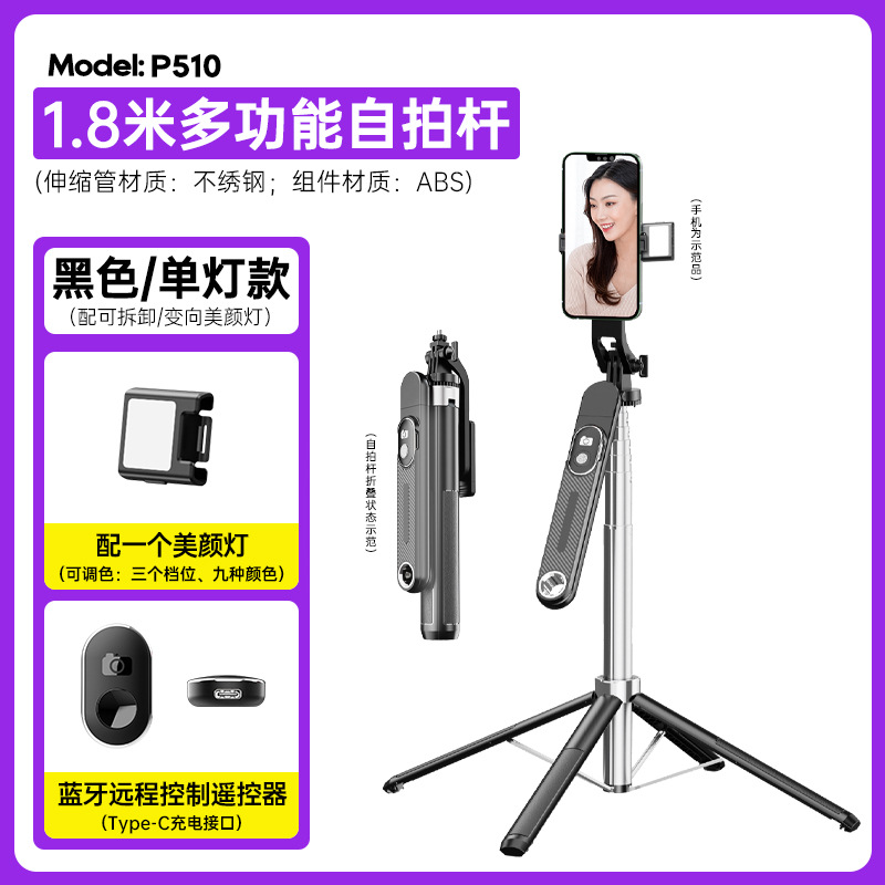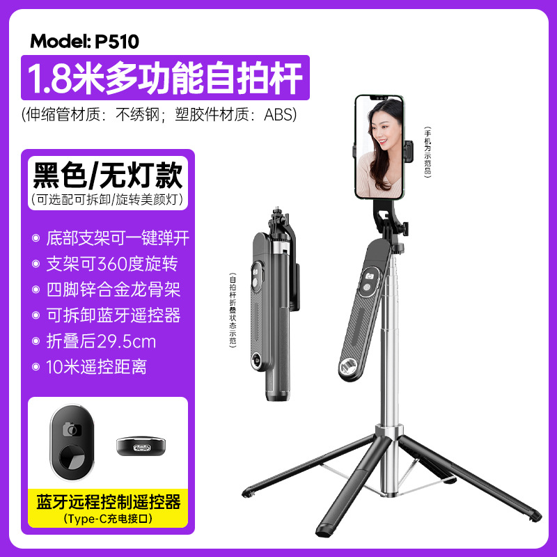 P510 국경 간 휴대 전화 셀카 스틱 네 다리 라이브 방송 스탠드 카메라 아티팩트 개폐식 확장 스틱 휴대 전화 셀카 스틱