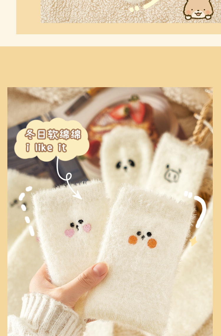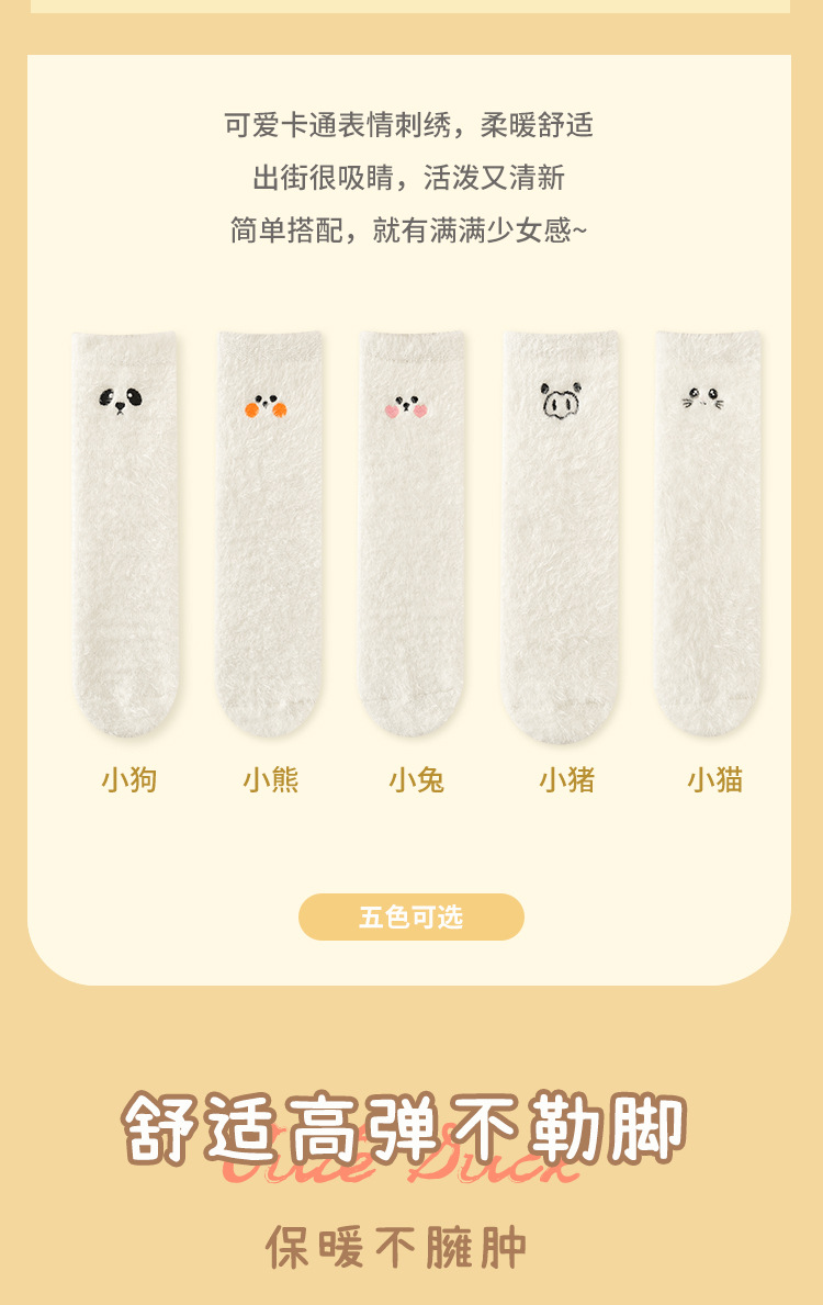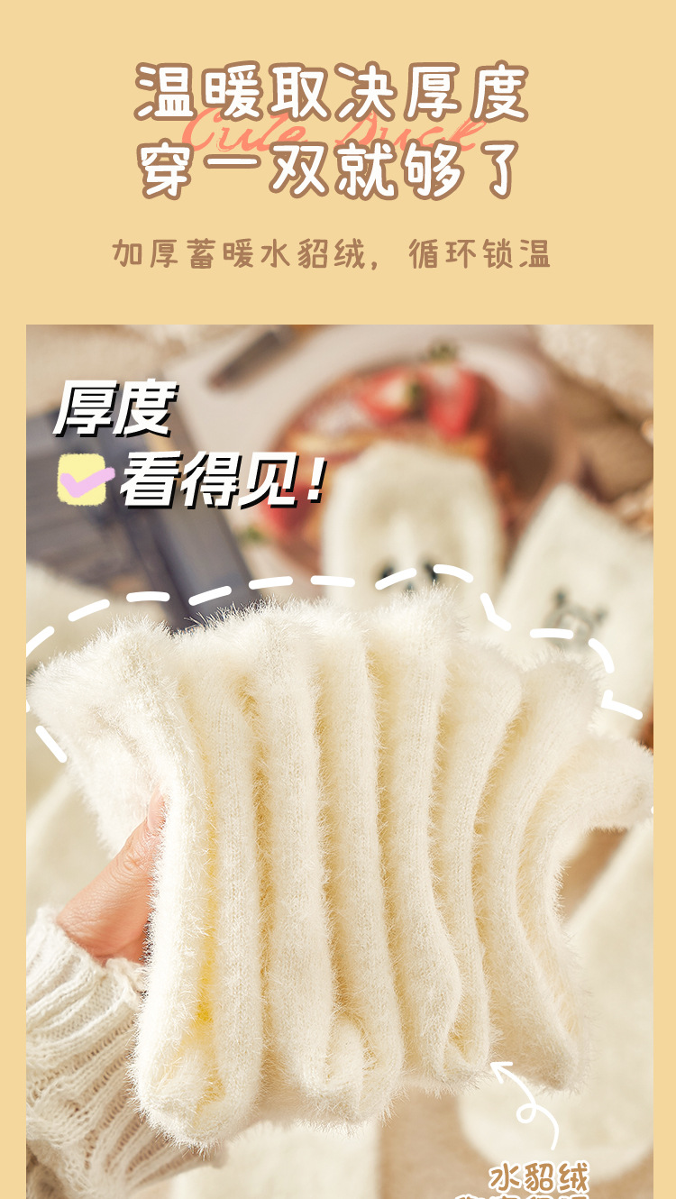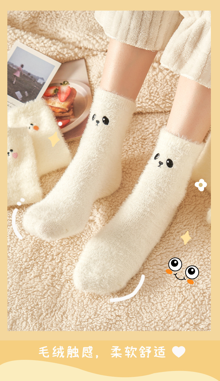 밍크 벨벳 미드 튜브 양말 어린이 만화 자수 흰색 홈 바닥 수면 양말 귀여운 일본 따뜻한 양말스토어 가기