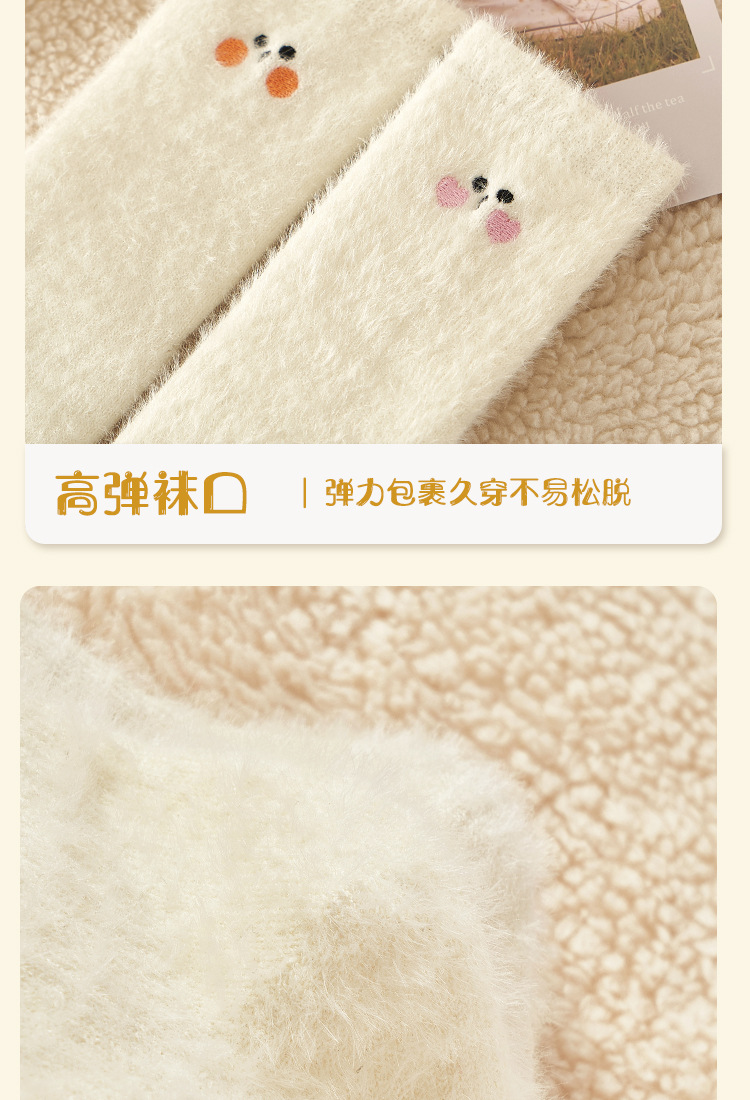 밍크 벨벳 미드 튜브 양말 어린이 만화 자수 흰색 홈 바닥 수면 양말 귀여운 일본 따뜻한 양말