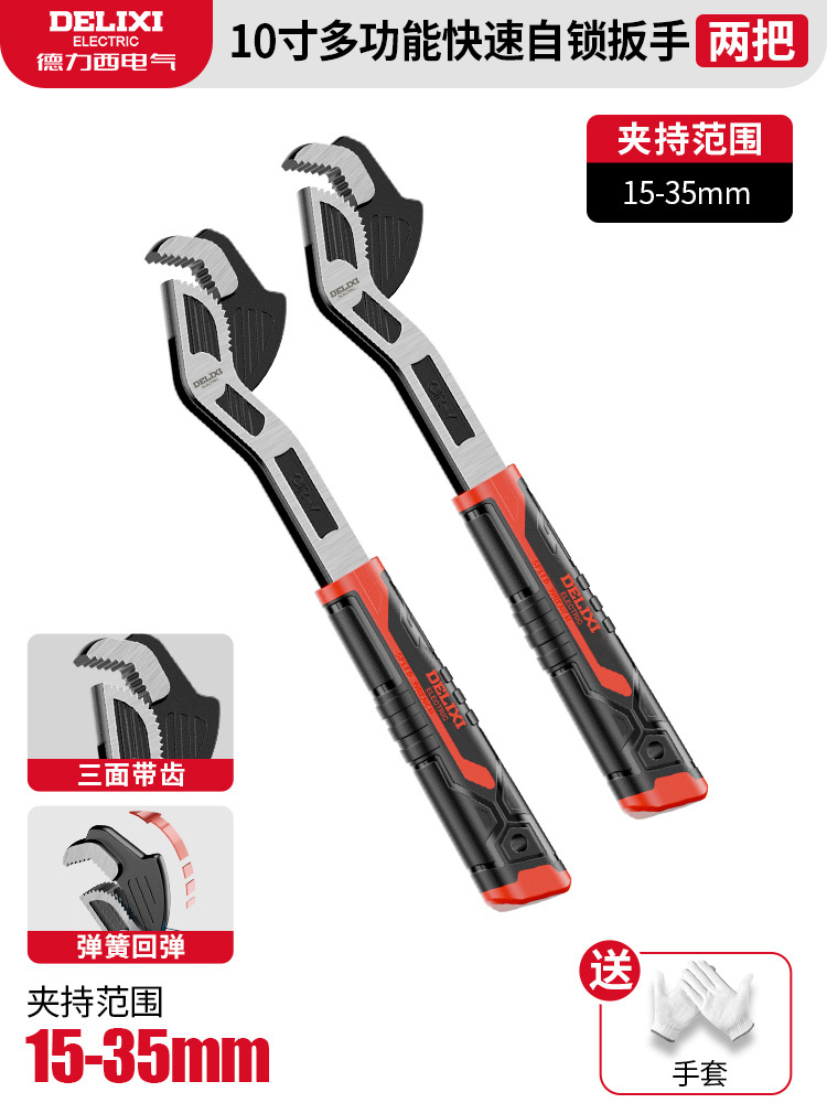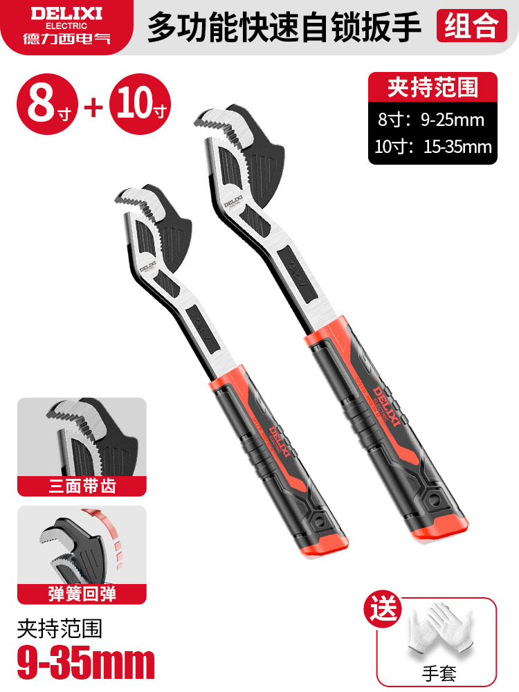 • Delixi 다기능 고속 자동 잠금 렌치【 10inch 】2개(장갑 포함)