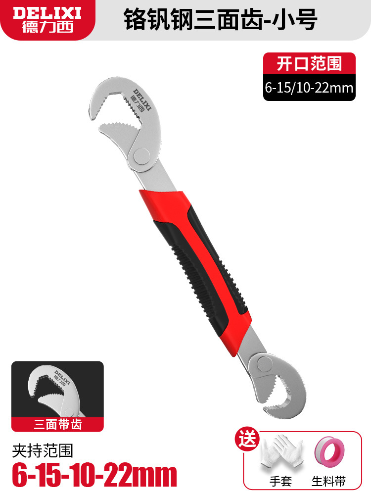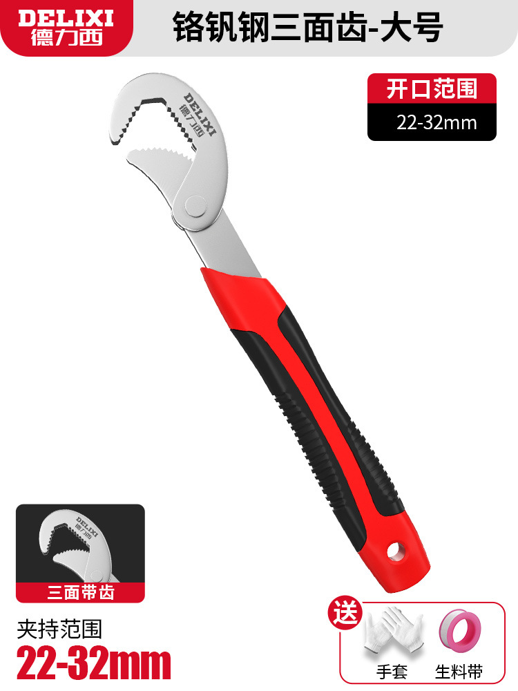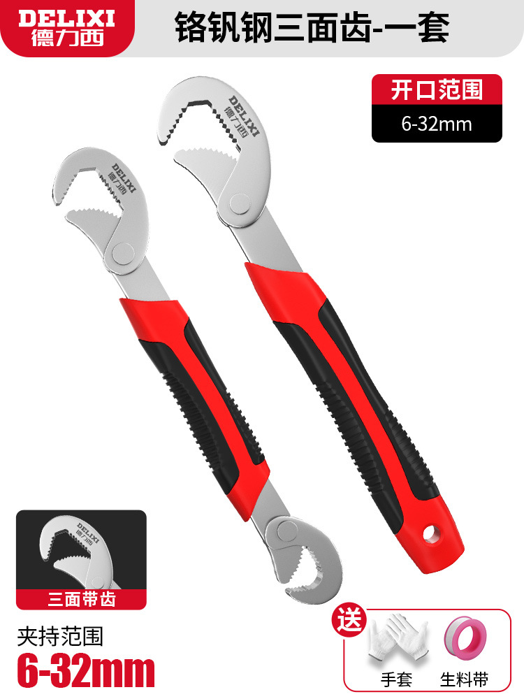 • Delixi [업그레이드된 3면 톱니] 범용 렌치 2팩(장갑 + 원료 벨트 포함)