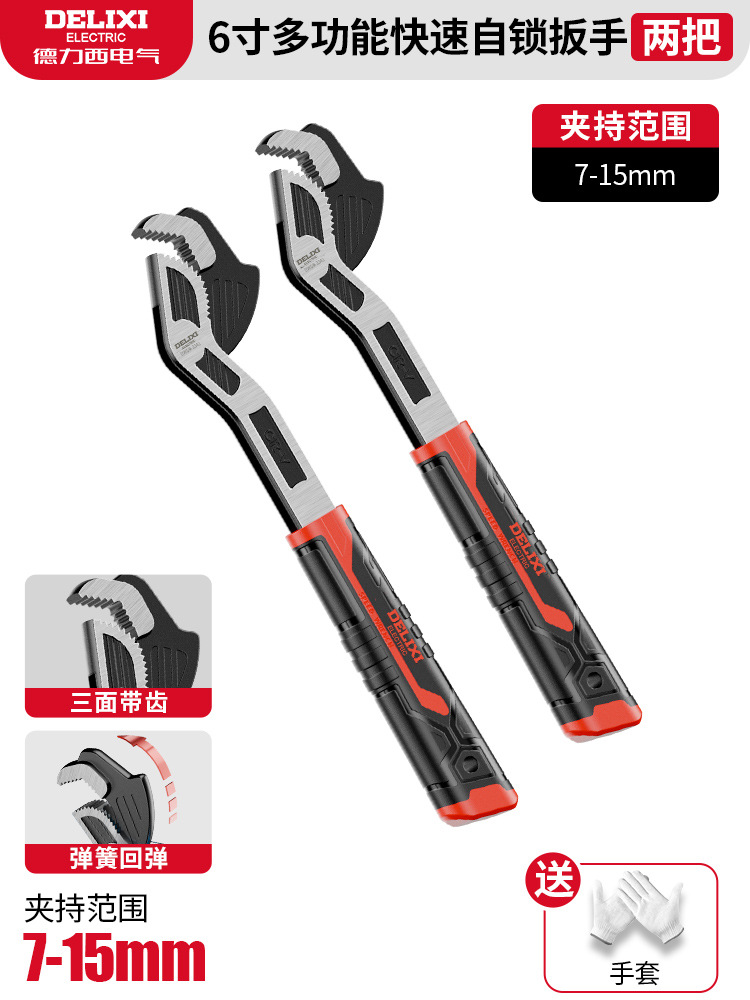 • Delixi 다기능 고속 자동 잠금 렌치【 6inch 】2개(장갑 포함)