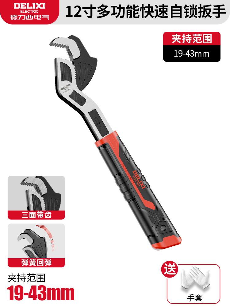 • Delixi [다기능 고속 자동 재설정] 자동 잠금 렌치 12inch (장갑 포함)