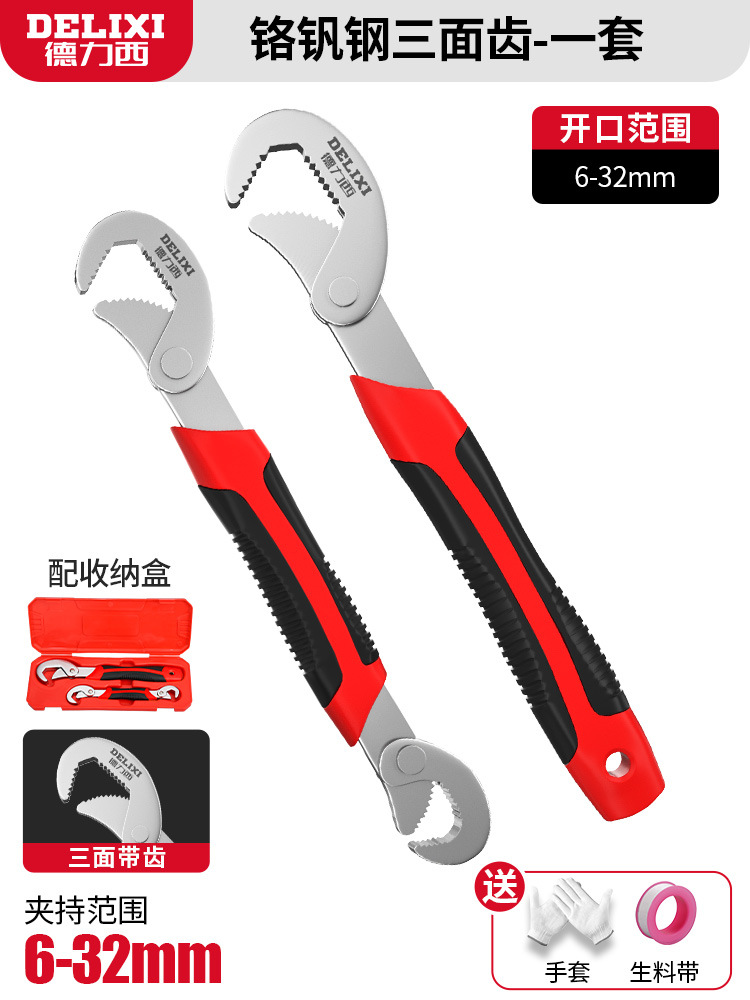 • Delixi [업그레이드된 삼면치] 범용 렌치 2개 + 보관함(장갑 + 원료 벨트 포함)