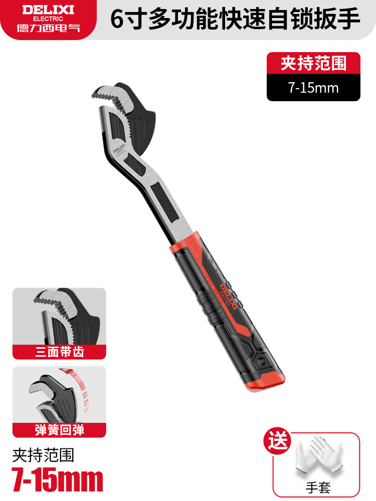 • Delixi [다기능 고속 자동 재설정] 자동 잠금 렌치 6inch (장갑 포함)