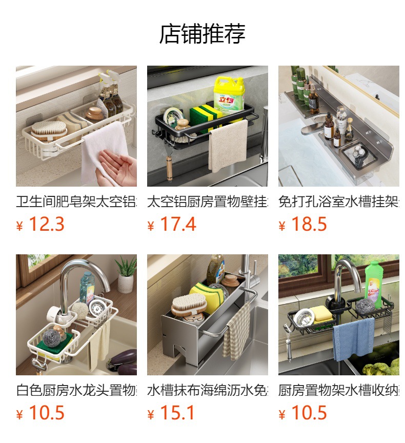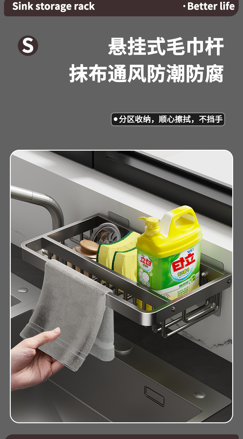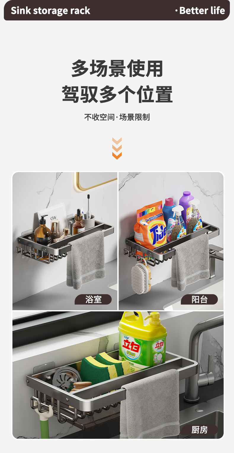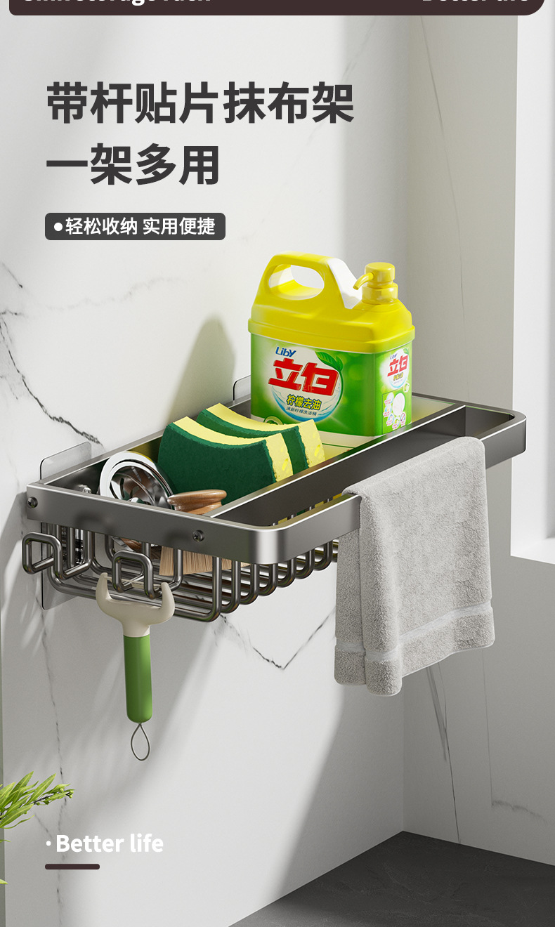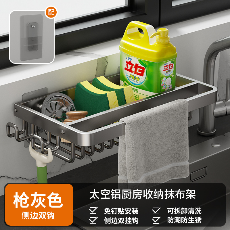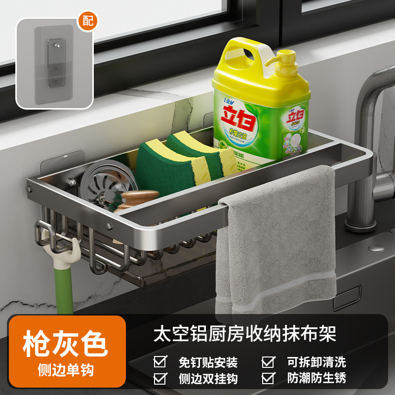 주방 다기능 드레인 랙 벽걸이 싱크대 스토리지 랙 펀치 프리 공간 알루미늄 국경 주방 스토리지 랙스토어 가기