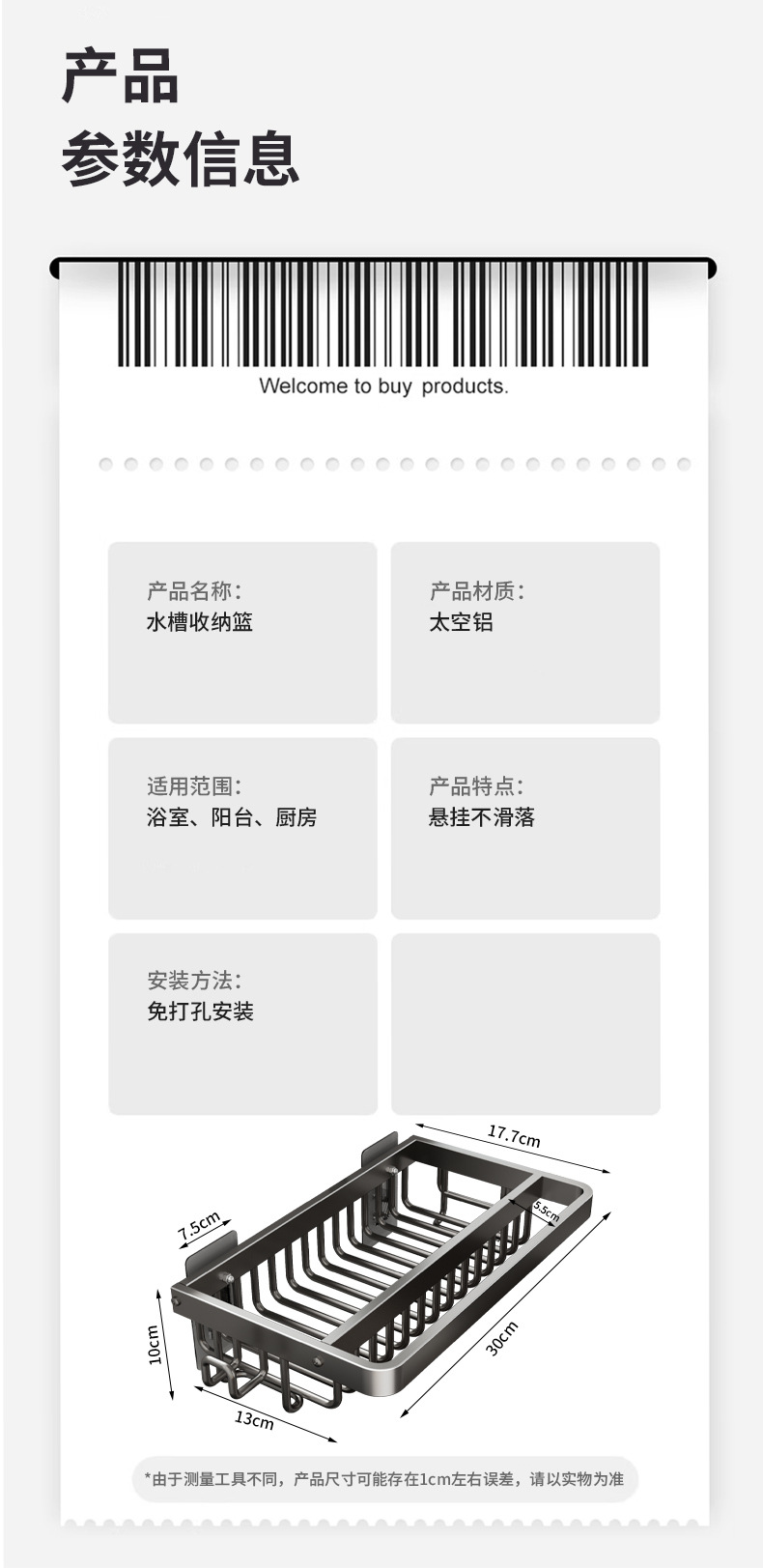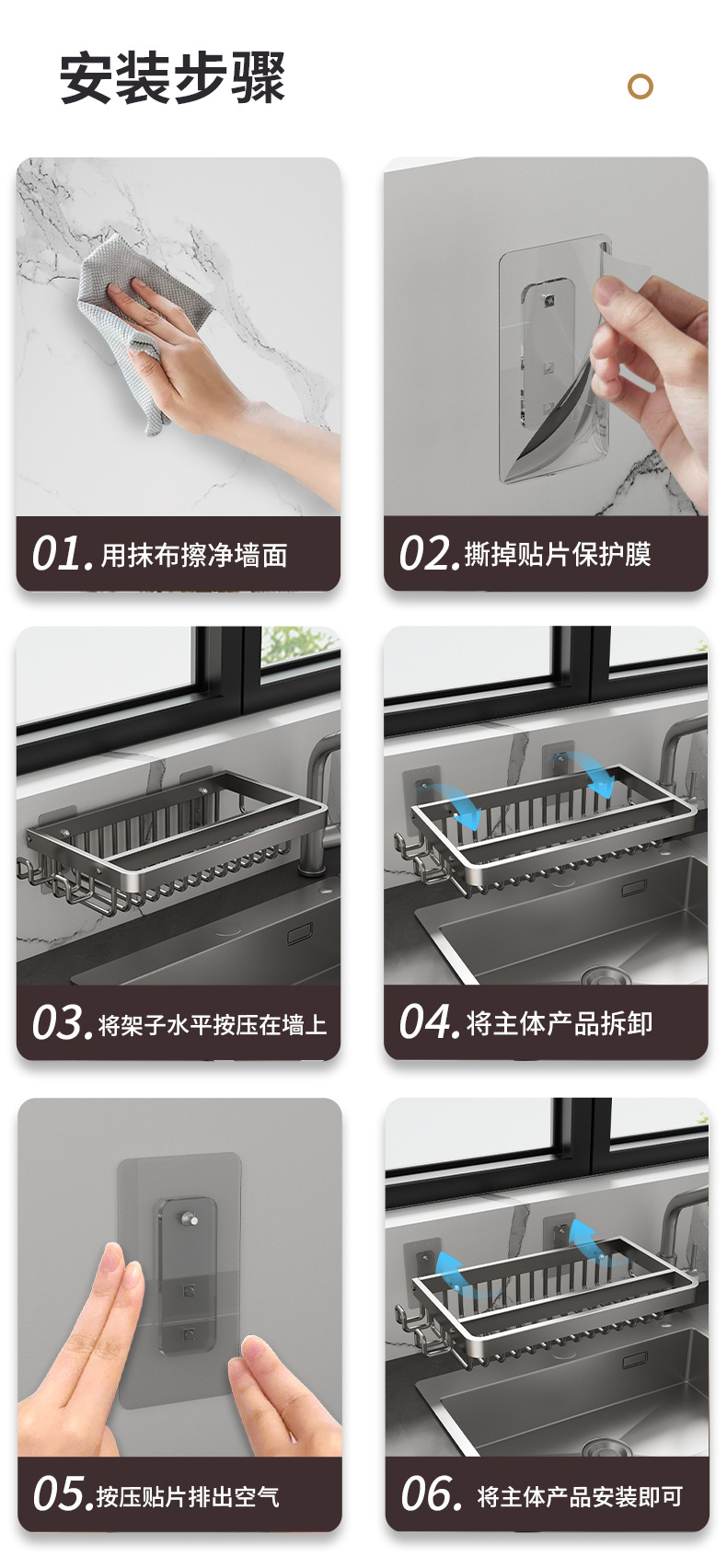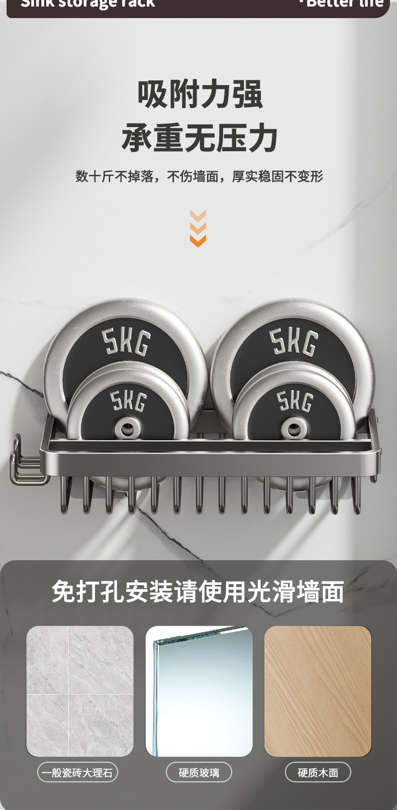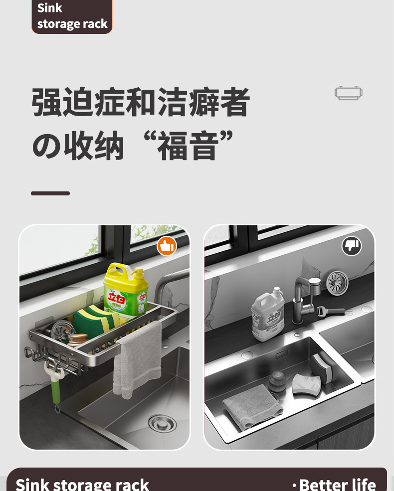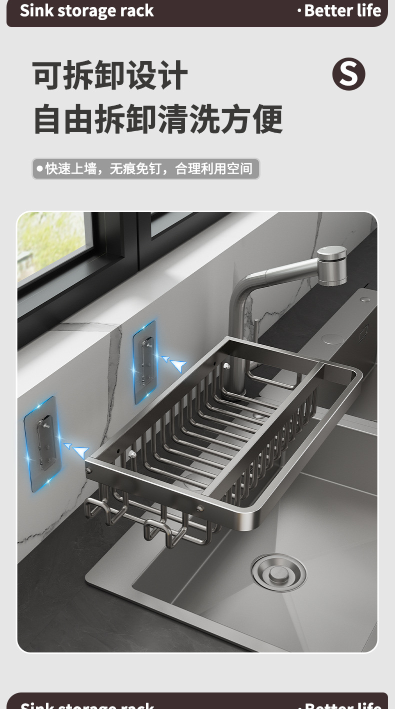 주방 다기능 드레인 랙 벽걸이 싱크대 스토리지 랙 펀치 프리 공간 알루미늄 국경 주방 스토리지 랙스토어 가기