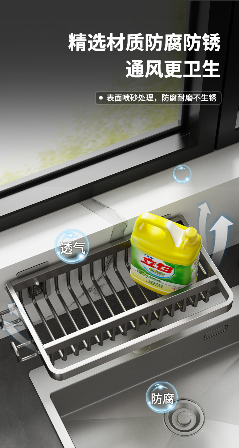 주방 다기능 드레인 랙 벽걸이 싱크대 스토리지 랙 펀치 프리 공간 알루미늄 국경 주방 스토리지 랙