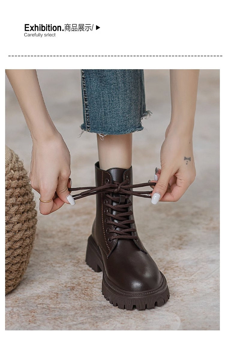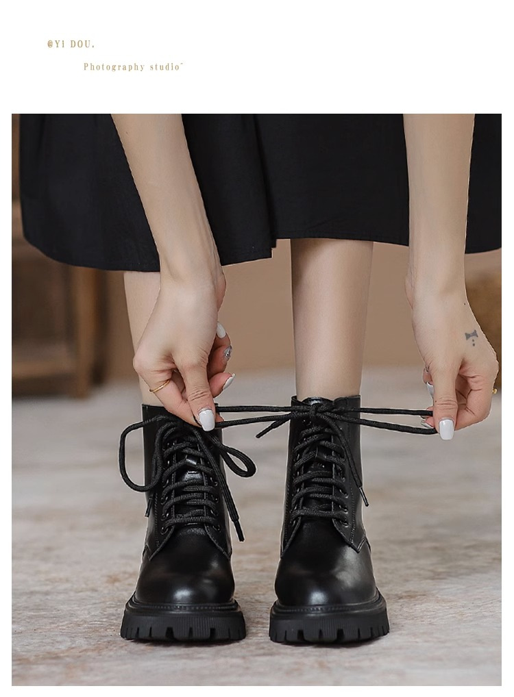 마틴 부츠 여성용 2025 신상 영국 스타일 키 작은 분들을 위한 두꺼운 밑창 부드러운 밑창 플러스 벨벳 숏부츠 트렌디한 가을 겨울 단화