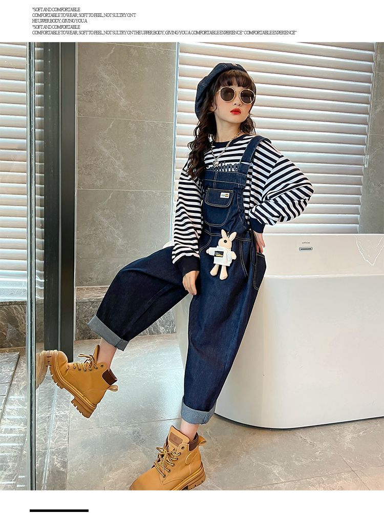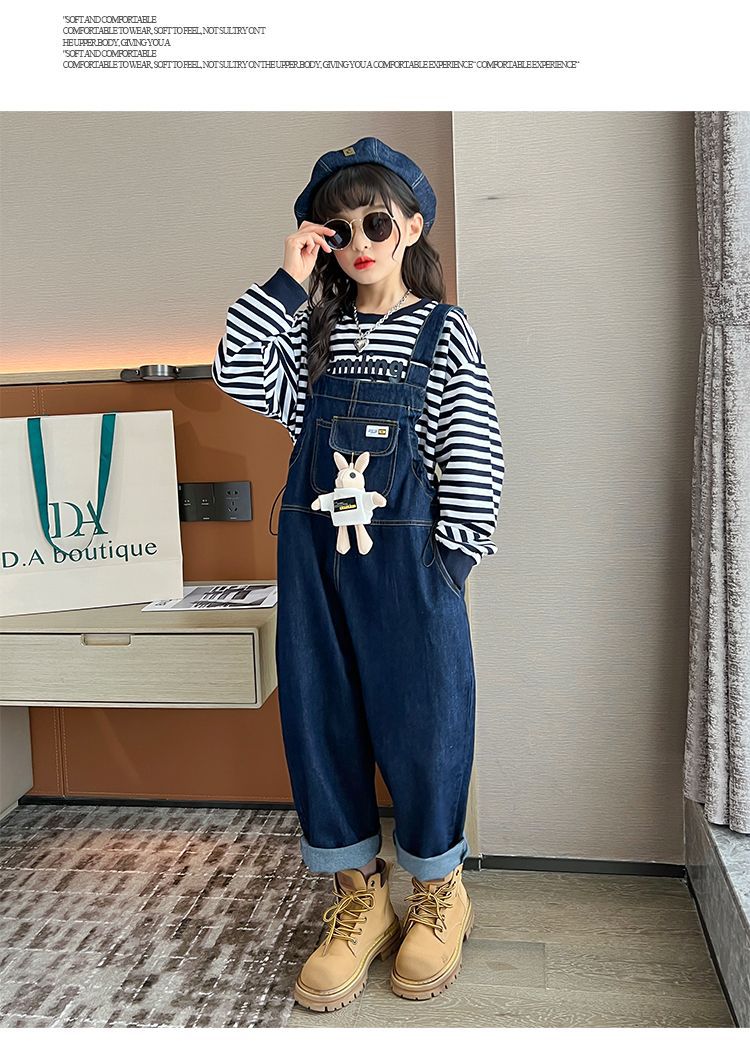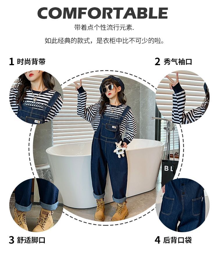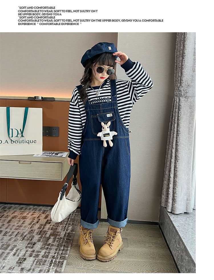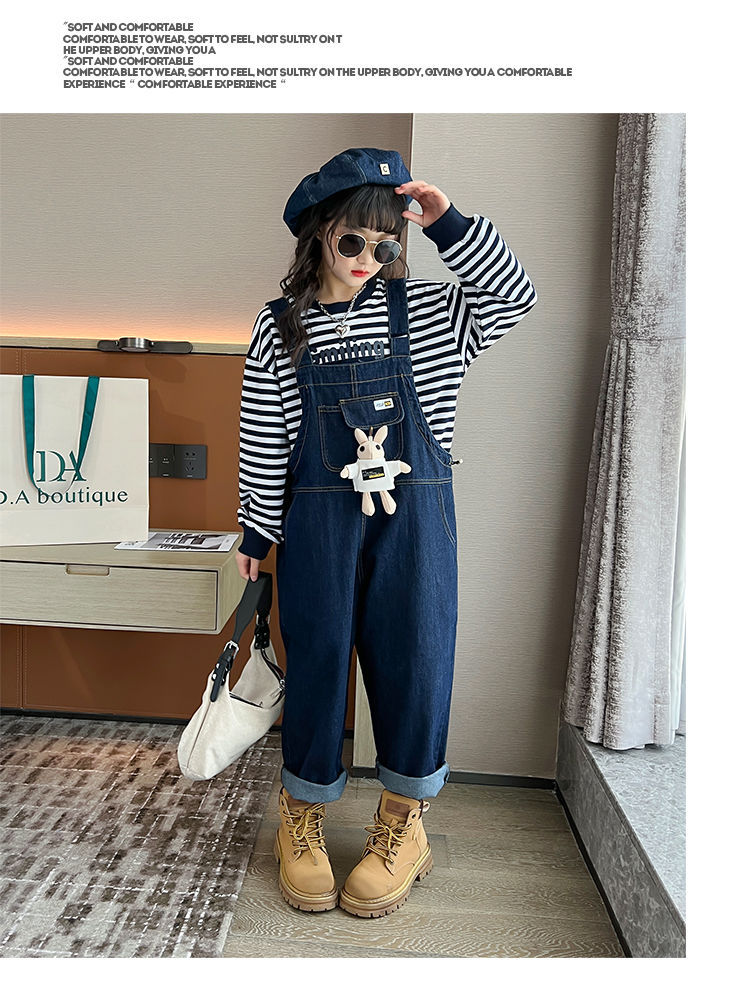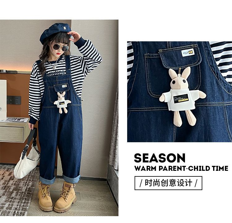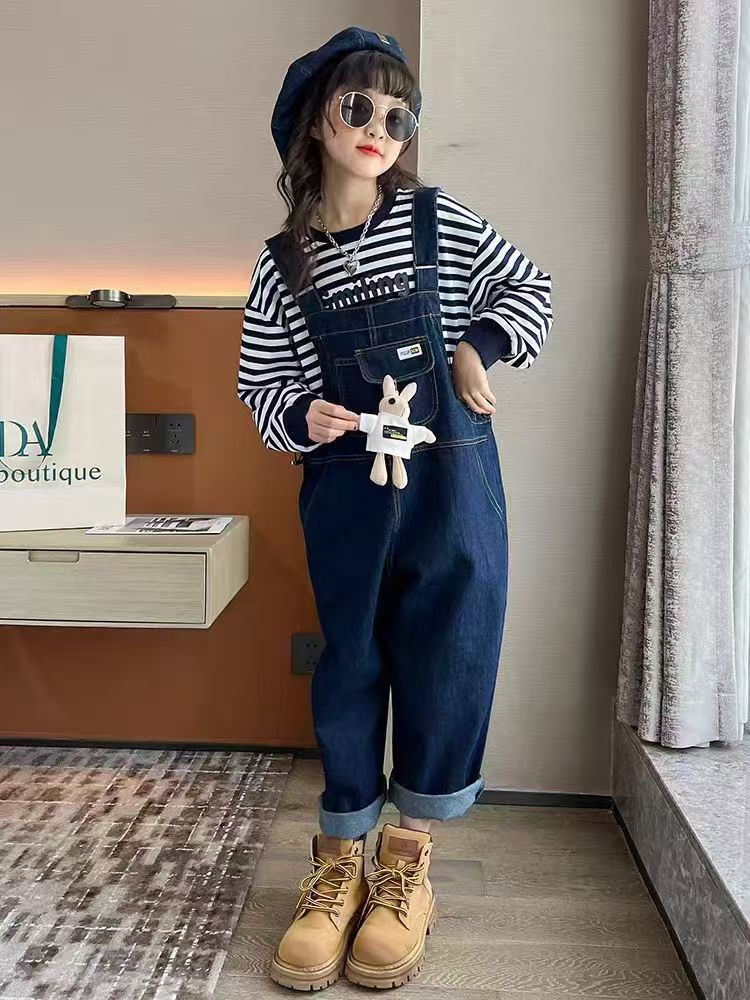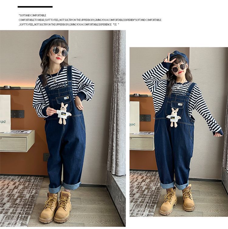소녀 데님 세트 어린이 바지 가을 새 느슨한 2024 큰 어린이와 소녀를위한 가을 긴 바지스토어 가기