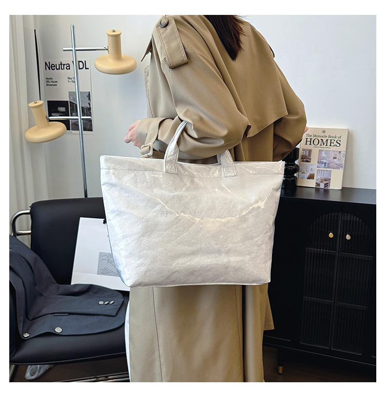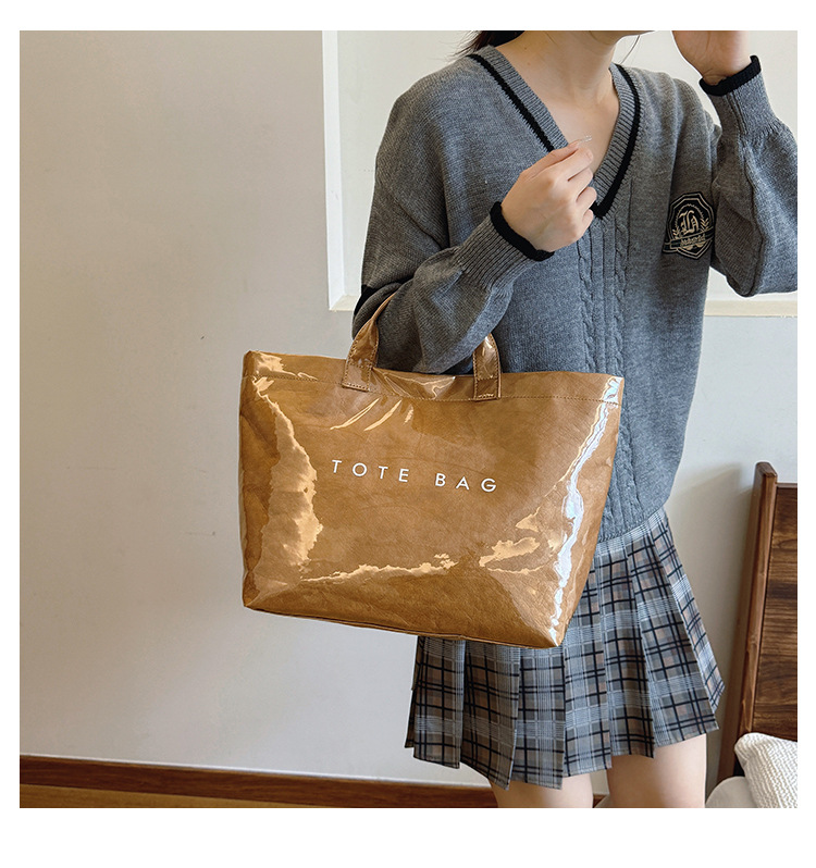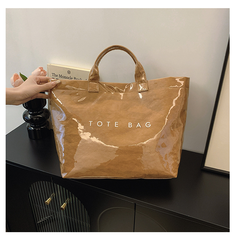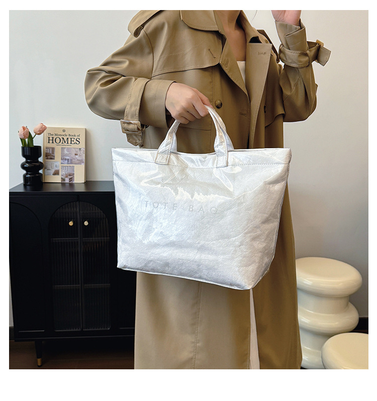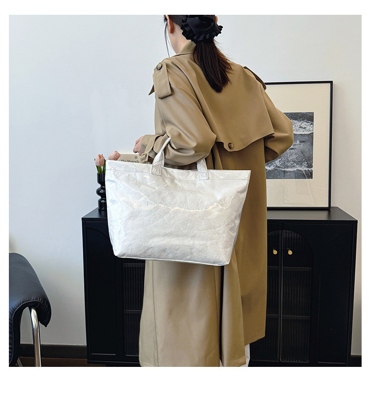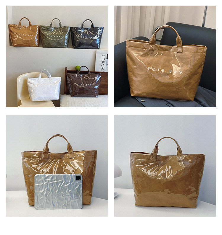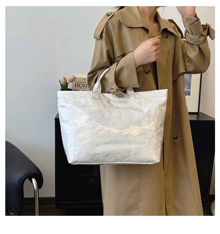 여성을위한 패션 복고풍 Dupont 종이 가방 2024 새로운 통근 대용량 크래프트 종이 핸드백 토트 백