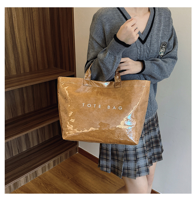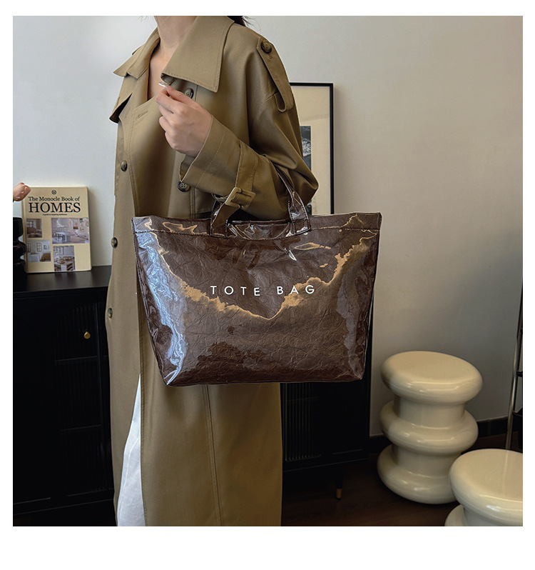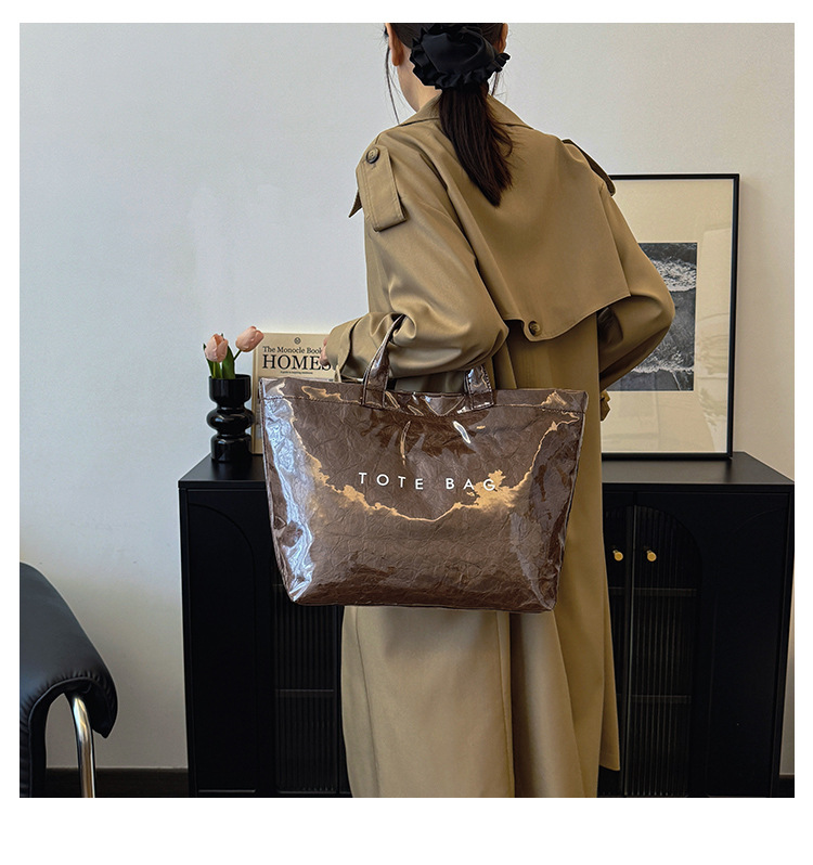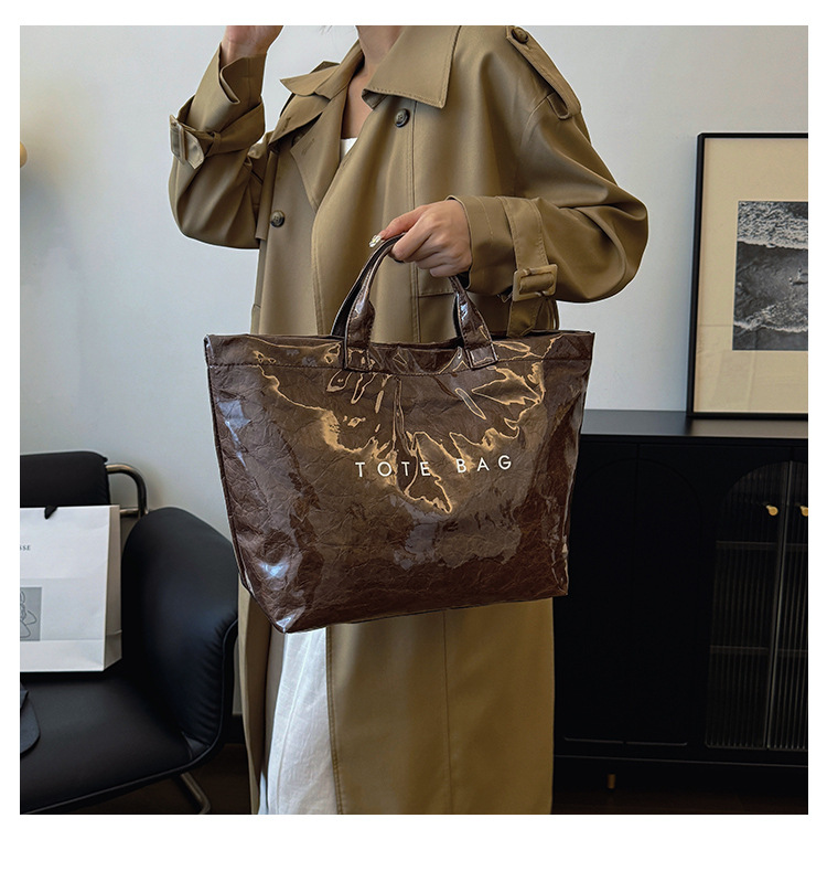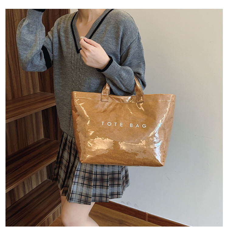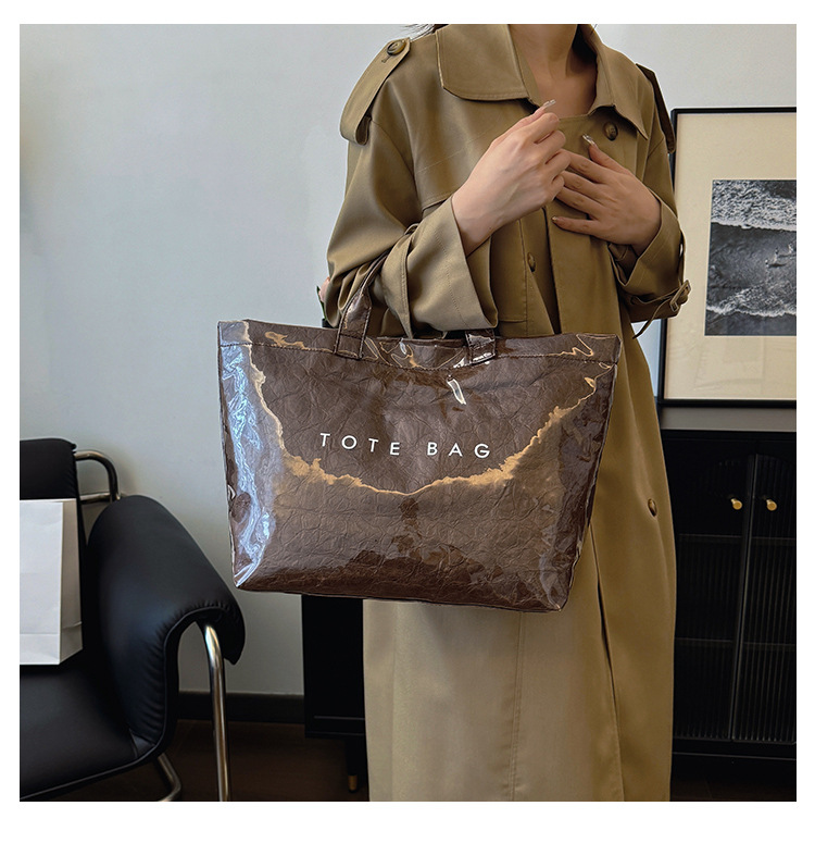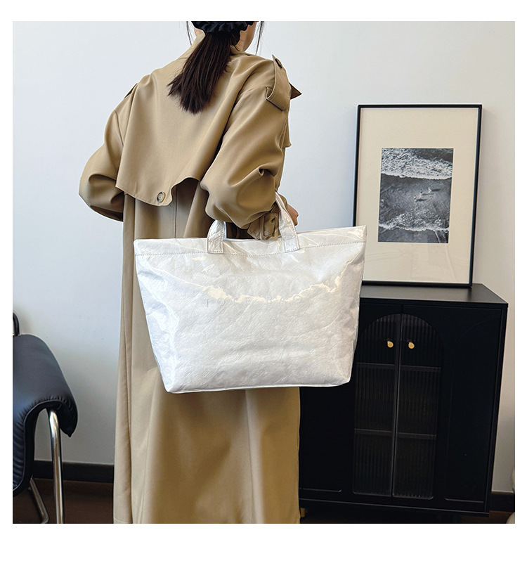 여성을위한 패션 복고풍 Dupont 종이 가방 2024 새로운 통근 대용량 크래프트 종이 핸드백 토트 백