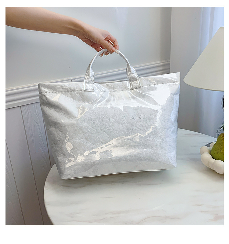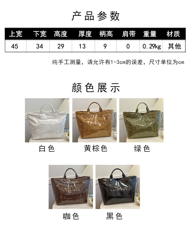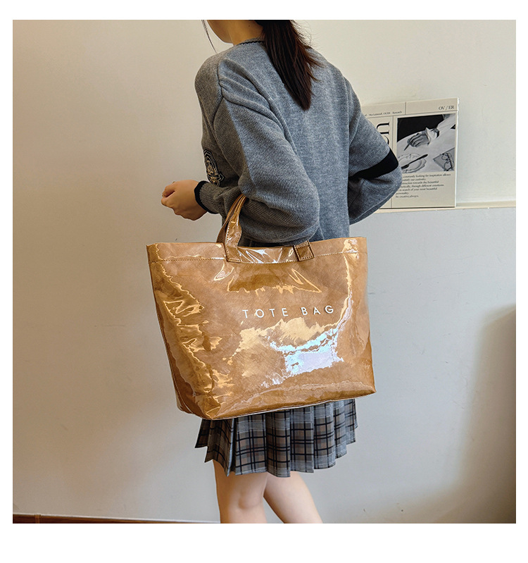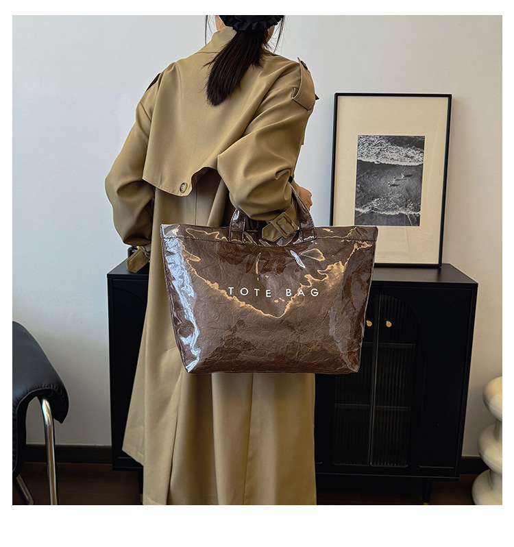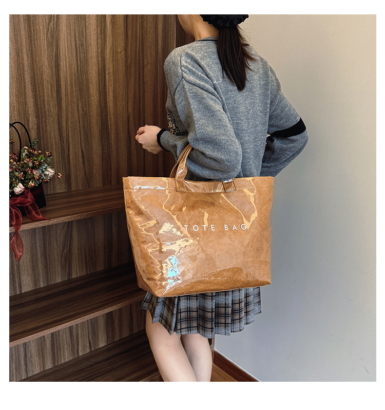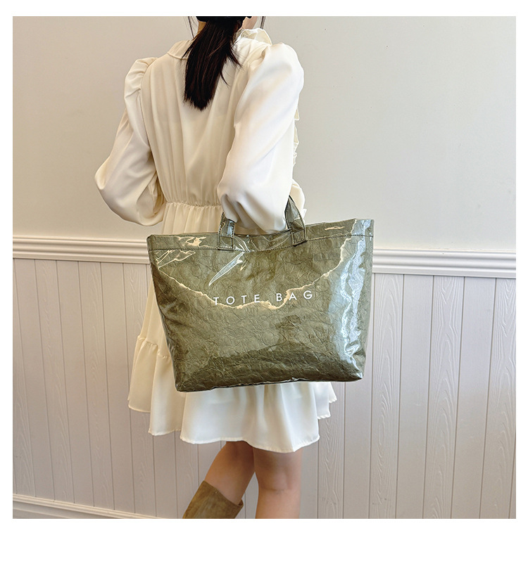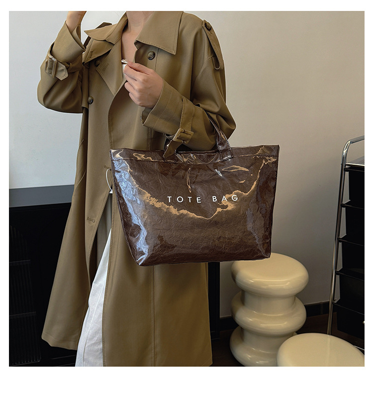 여성을위한 패션 복고풍 Dupont 종이 가방 2024 새로운 통근 대용량 크래프트 종이 핸드백 토트 백