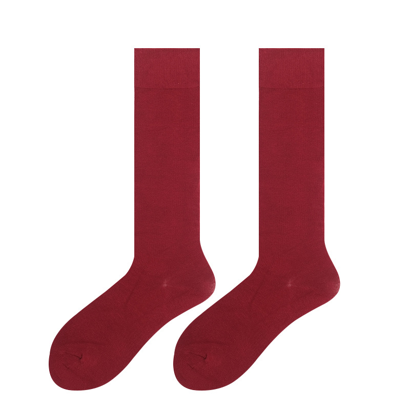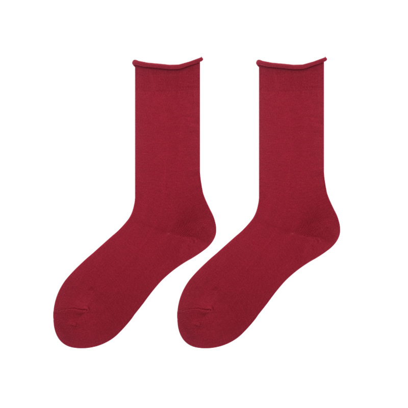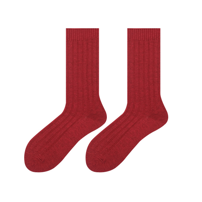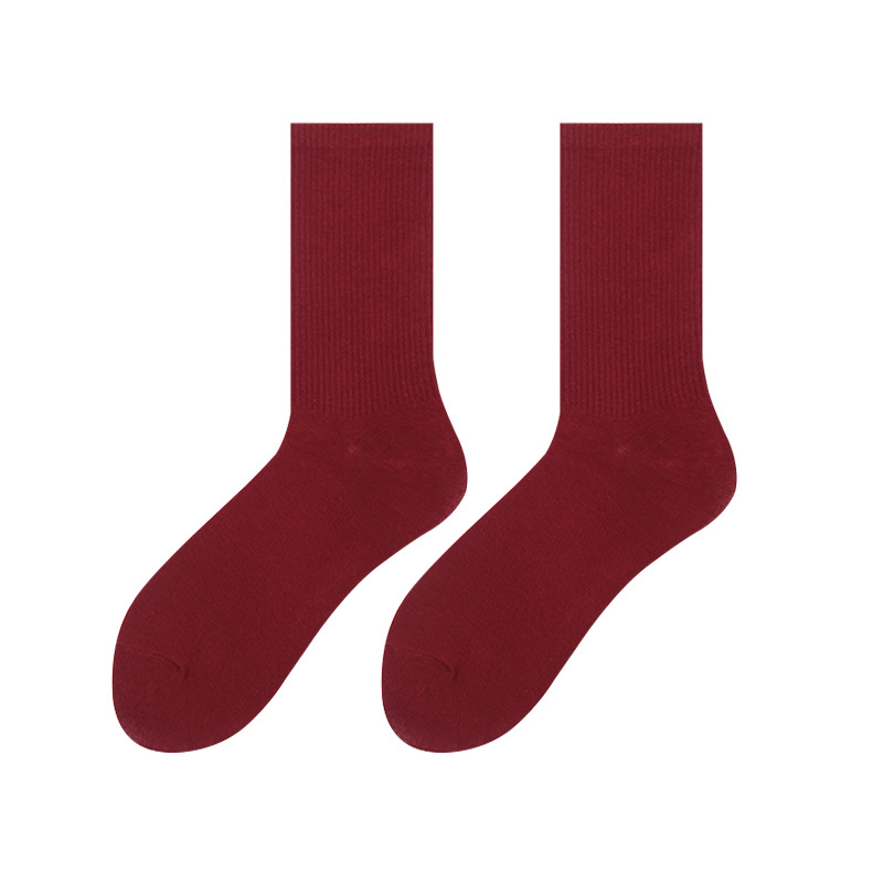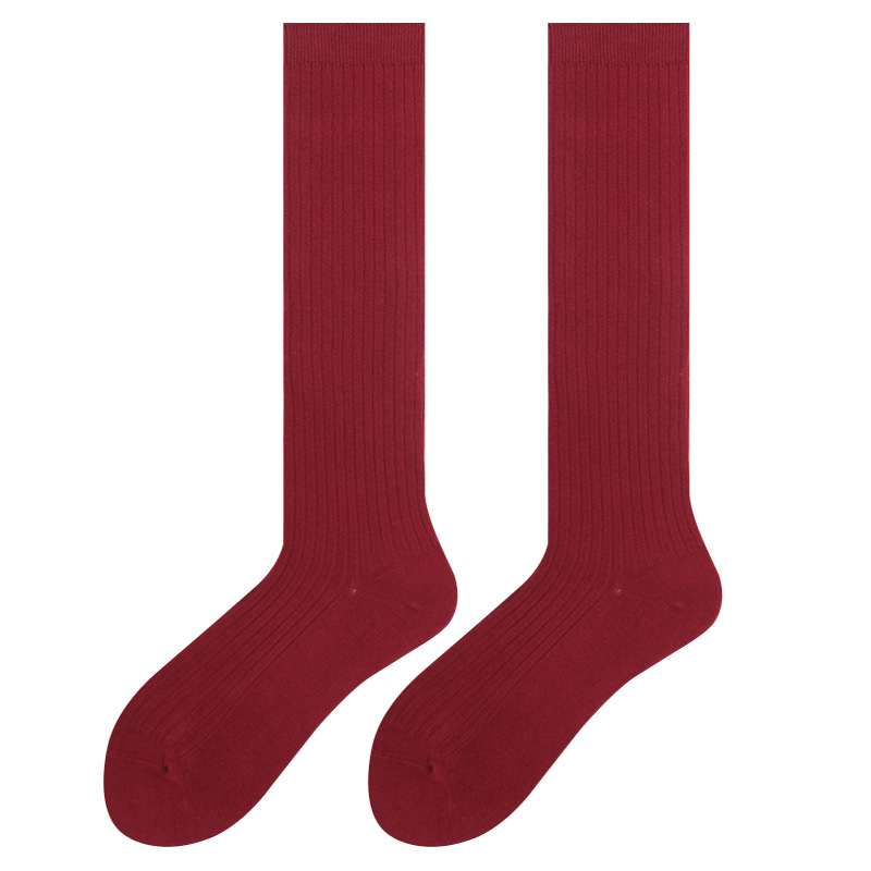 안코라 레드 송아지 양말 여성용 수직 줄무늬 중간 길이 양말 솔리드 컬러 봄과 가을 버건디 양말 슬리밍 스타킹
