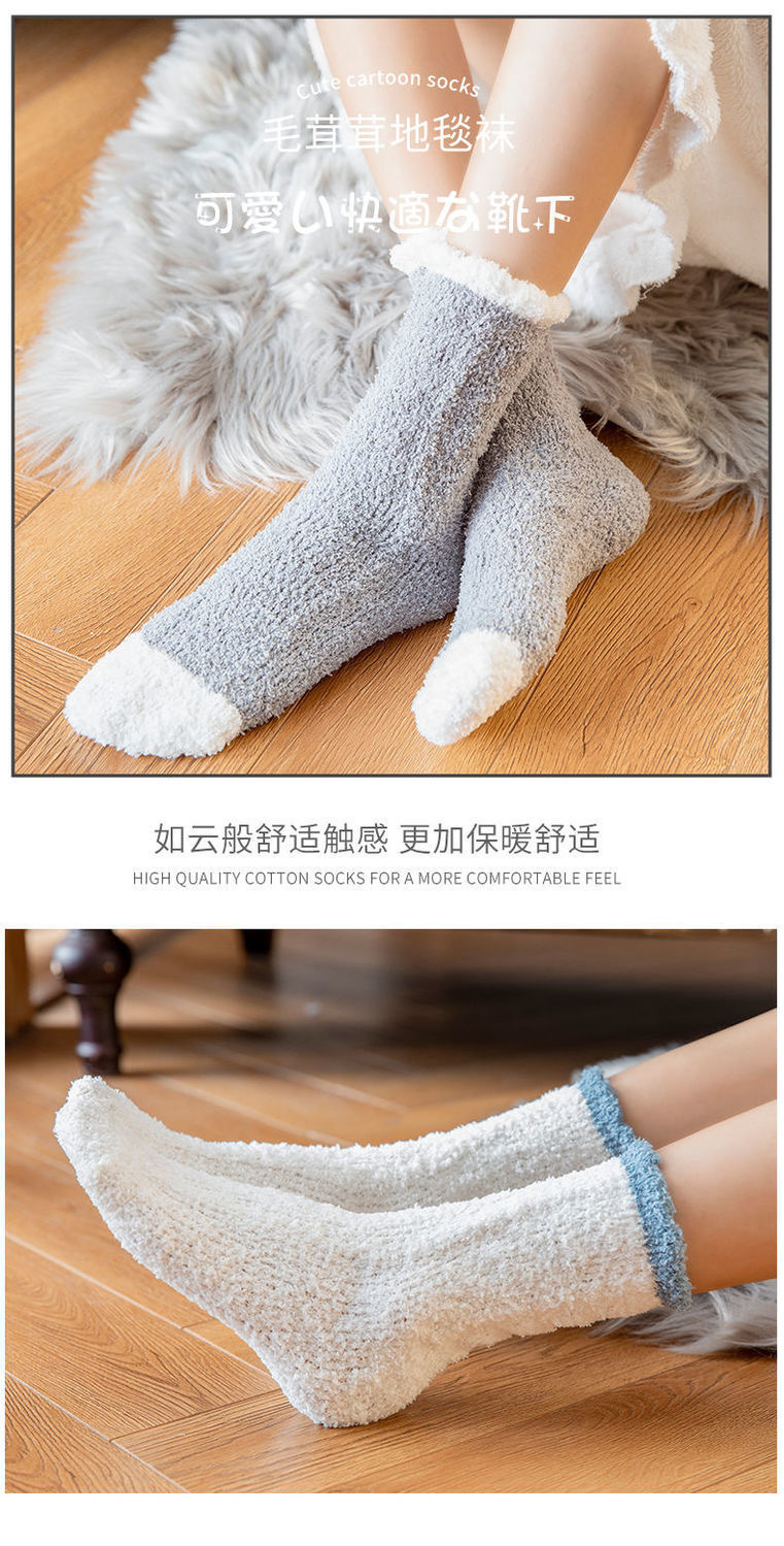 국경 간 산호 양털 양말 여성 수면 가을과 겨울 중간 튜브 홈 기모 두꺼운 달 양말 플러시 바닥 양말