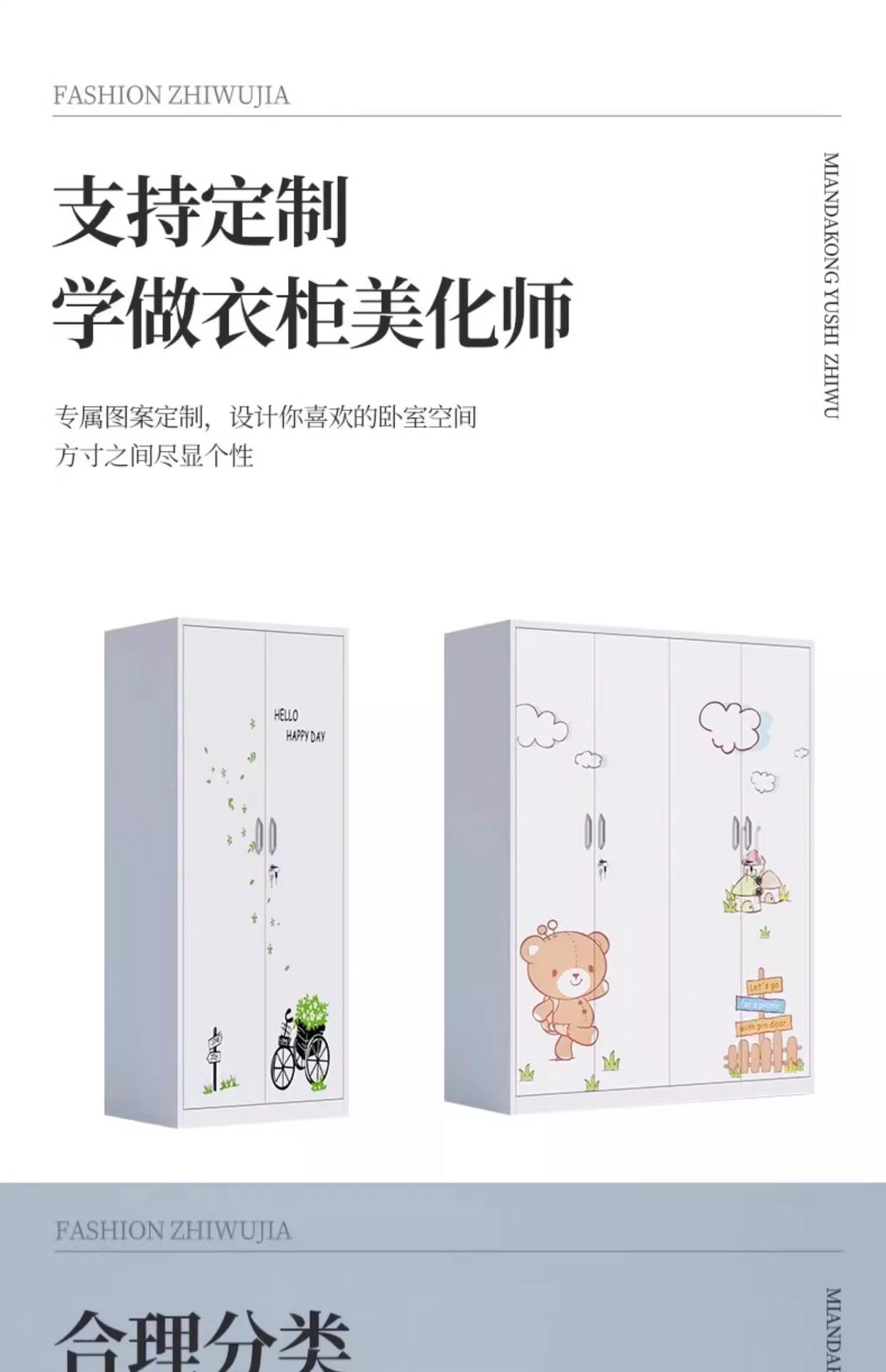 철제 옷장 침실 슬라이딩 도어 어린이 프린트 잠금장치 포함 대용량 수납장 두꺼운 철제스토어 가기