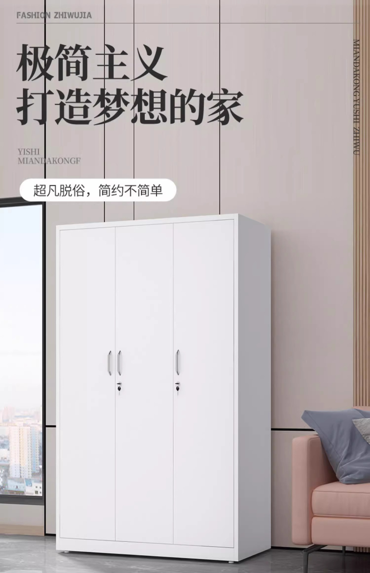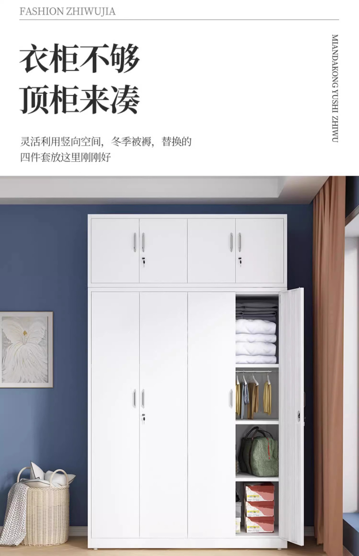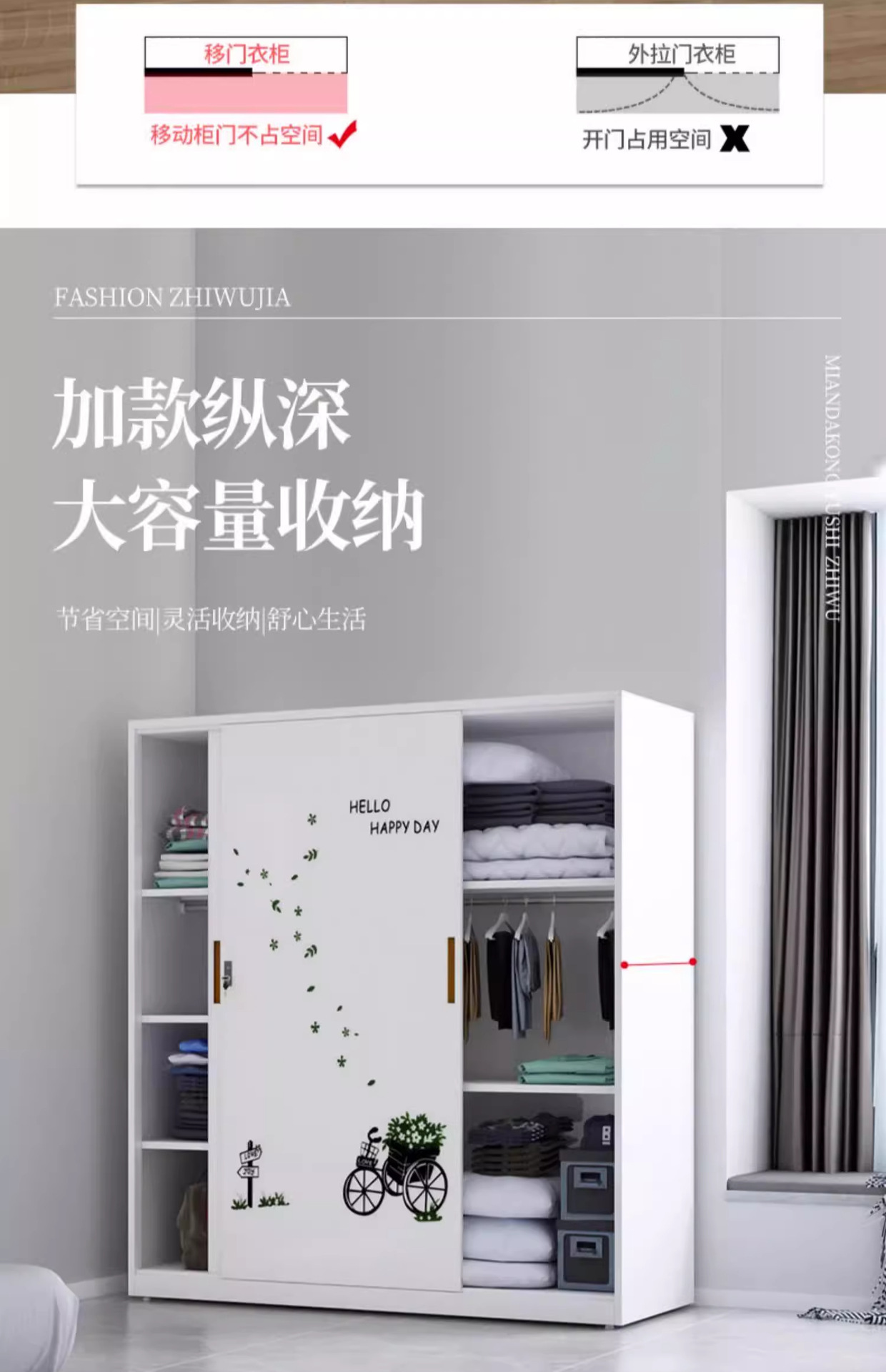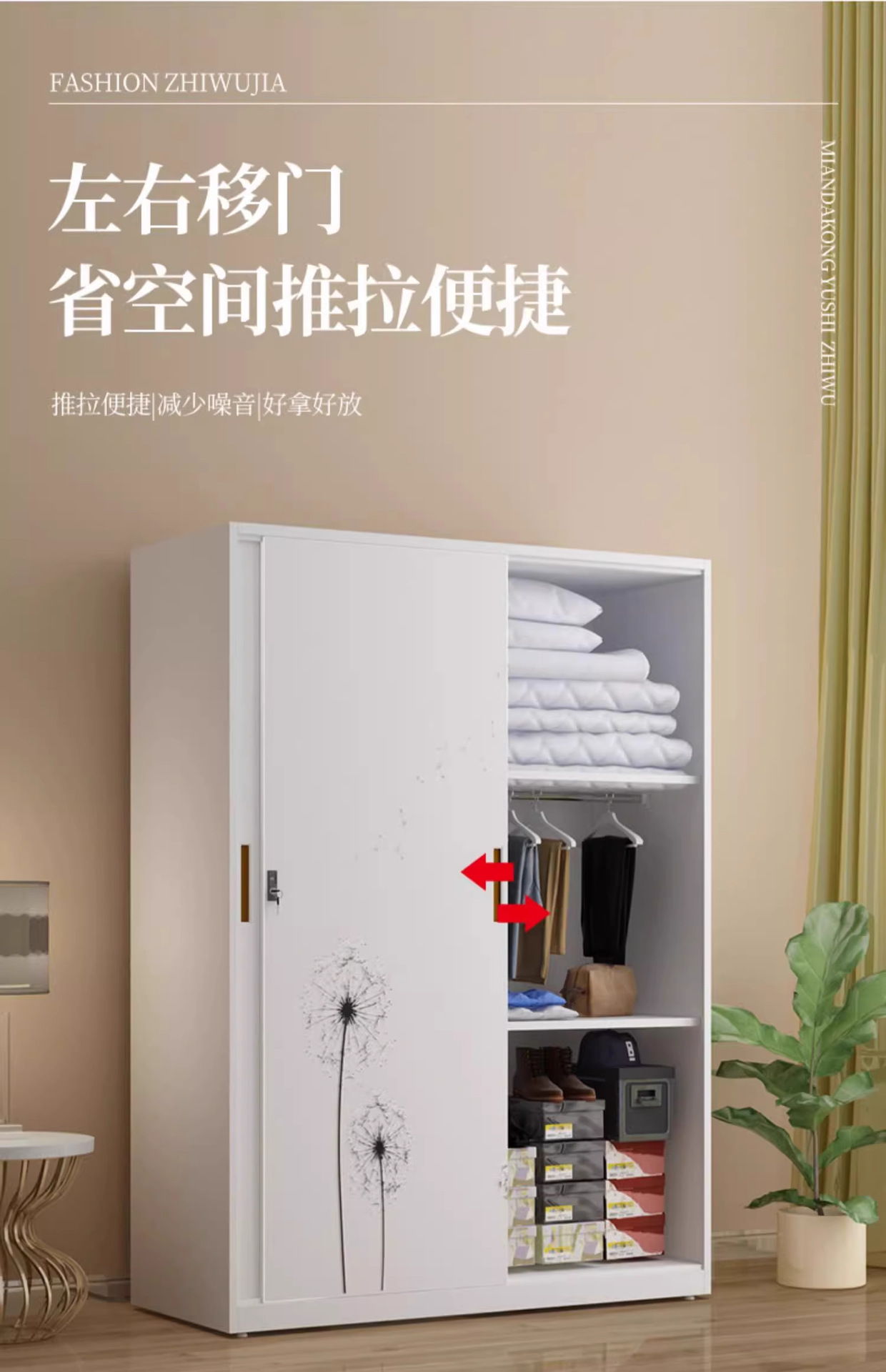 철제 옷장 침실 슬라이딩 도어 어린이 프린트 잠금장치 포함 대용량 수납장 두꺼운 철제