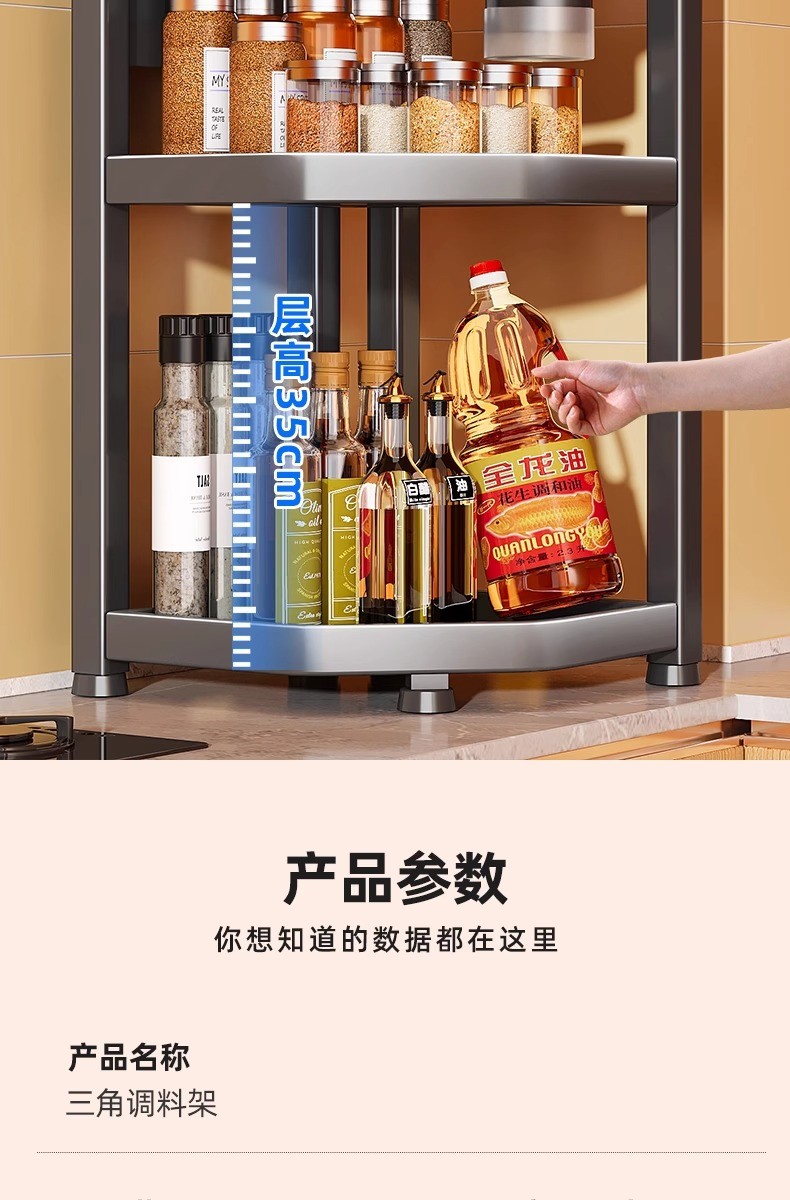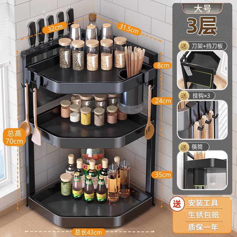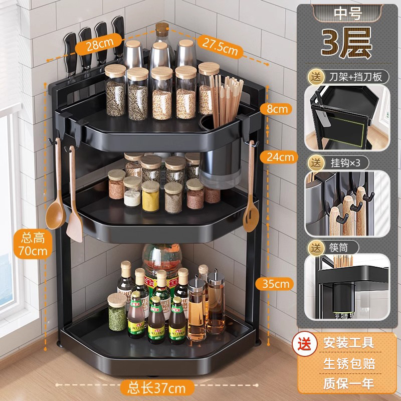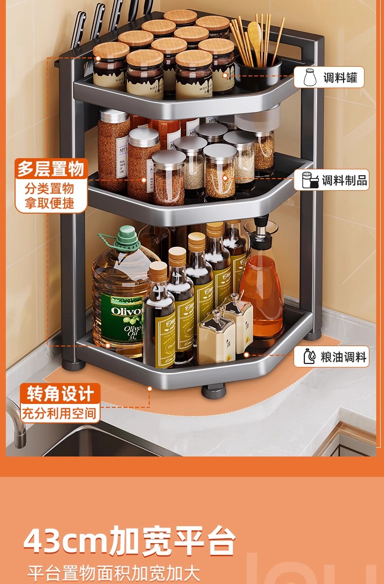 Xinxinyuan 주방 보관 랙 조미료 카운터 탑 다기능 주방 소금 오일 코너 다층 저장 상자 3 Heng Ming