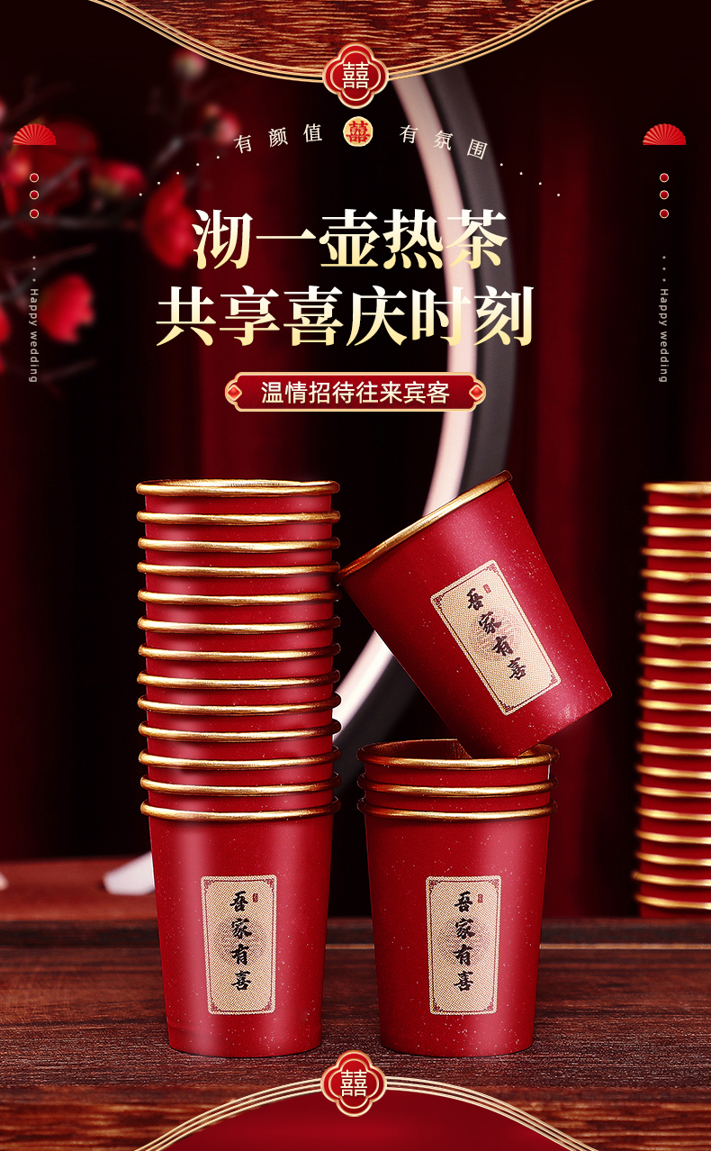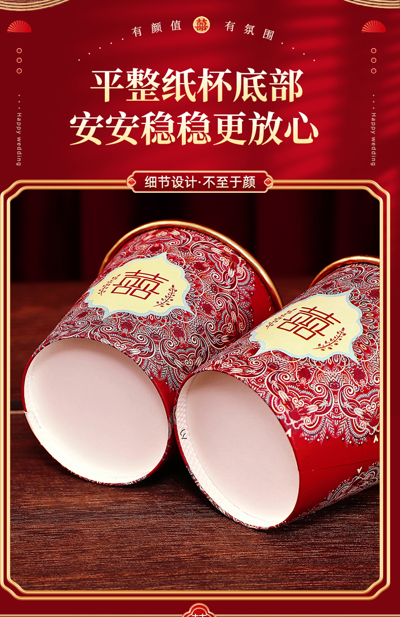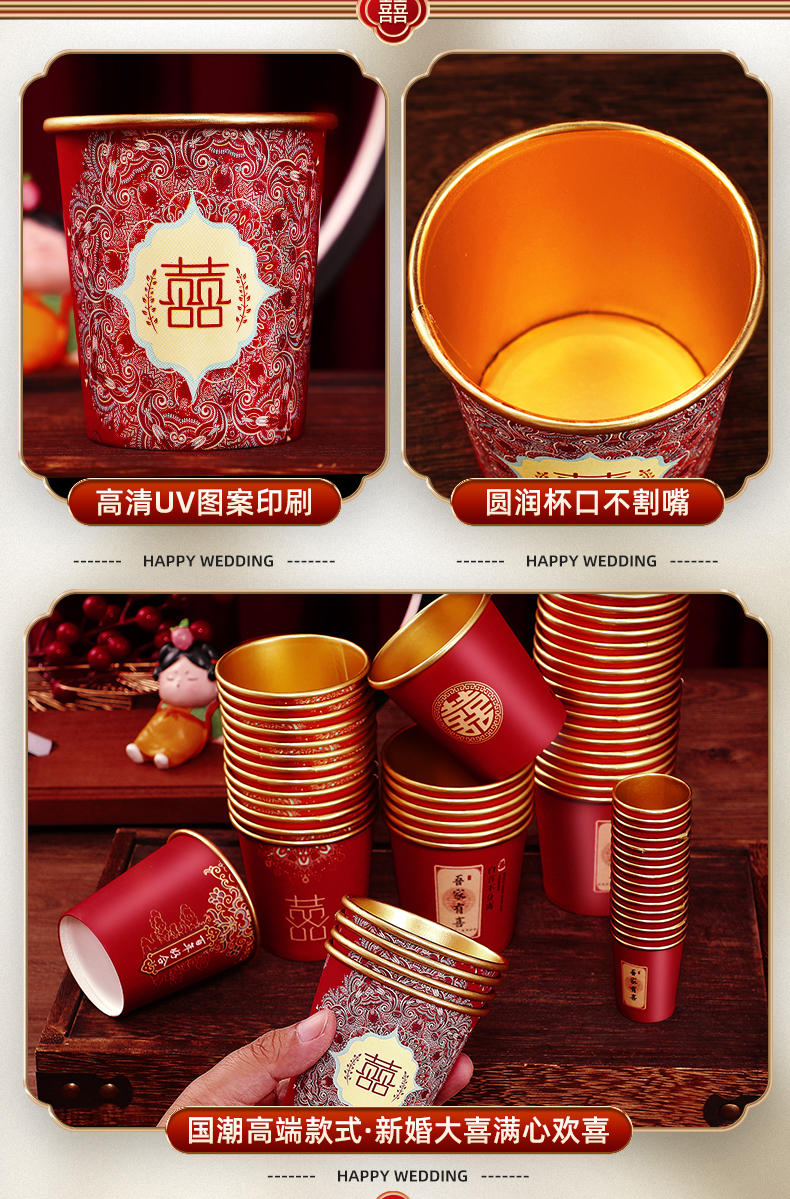 웨딩 페이퍼 컵 일회용 컵 결혼식 두꺼운 웨딩 연회 골드 호일 레드 웨딩 워터 컵 징 헝밍