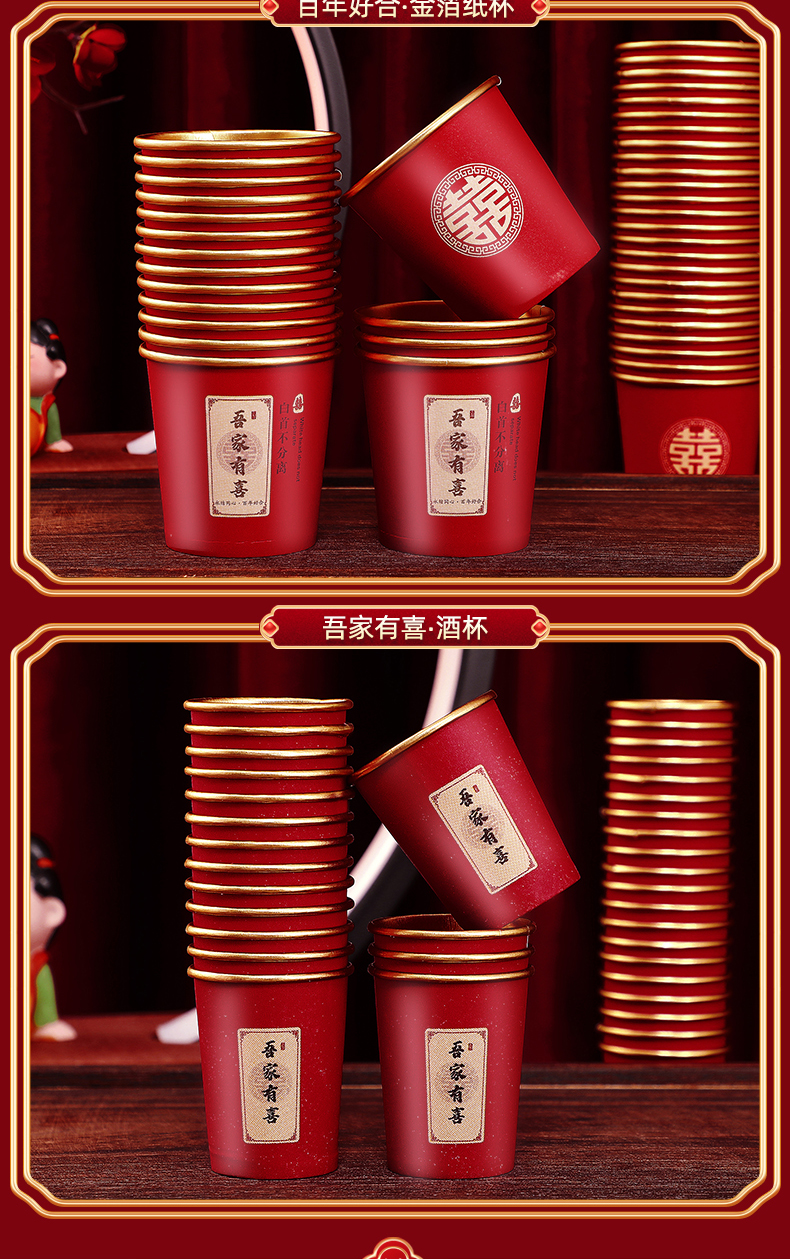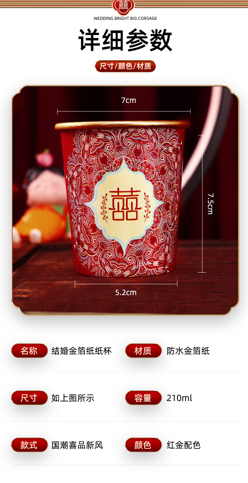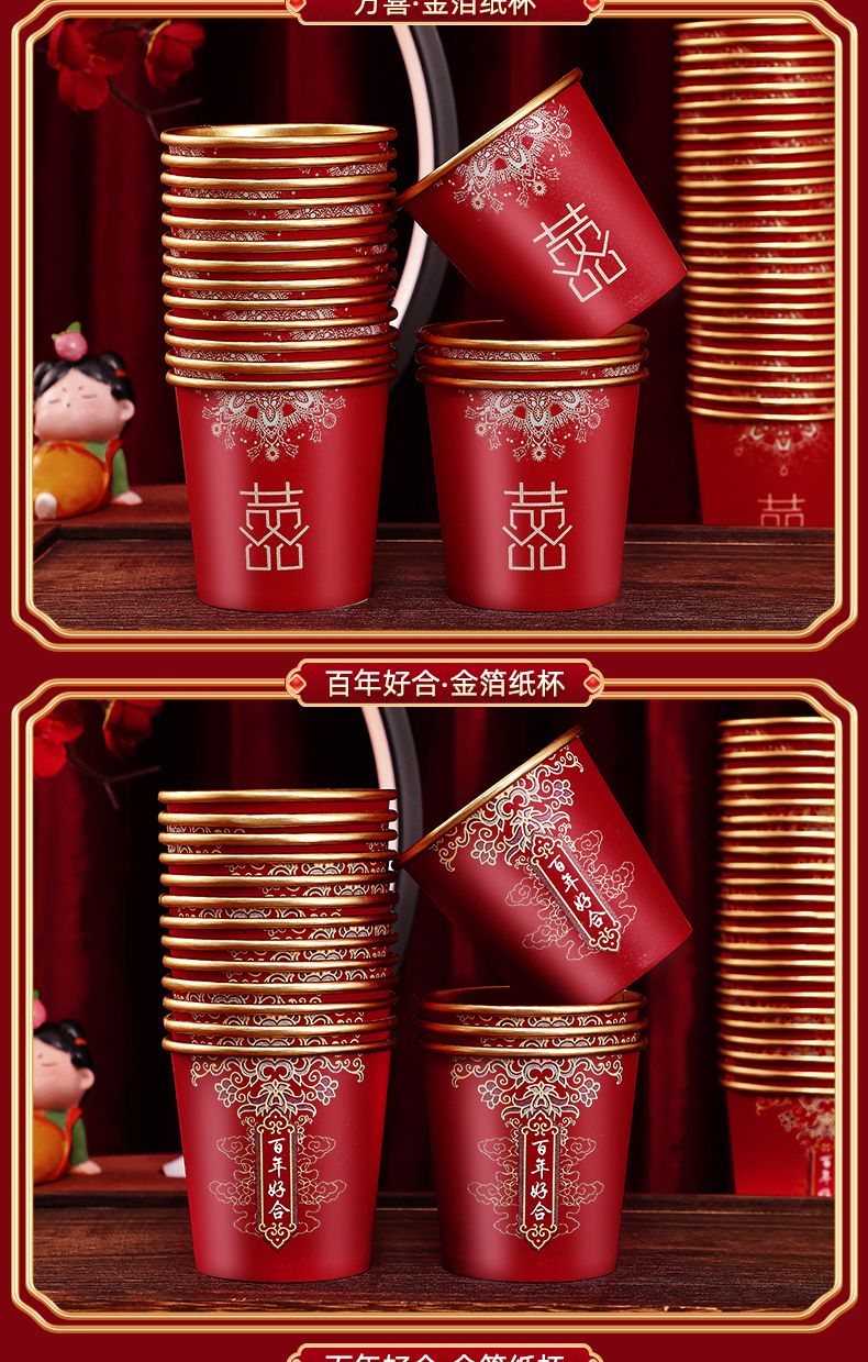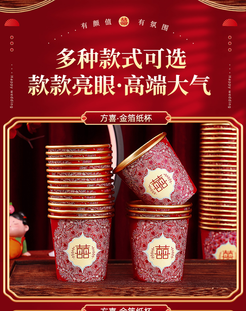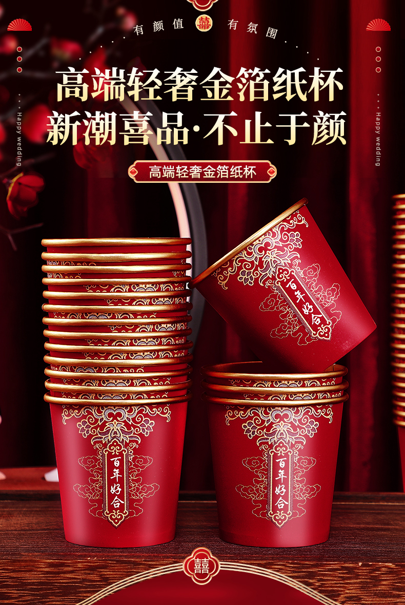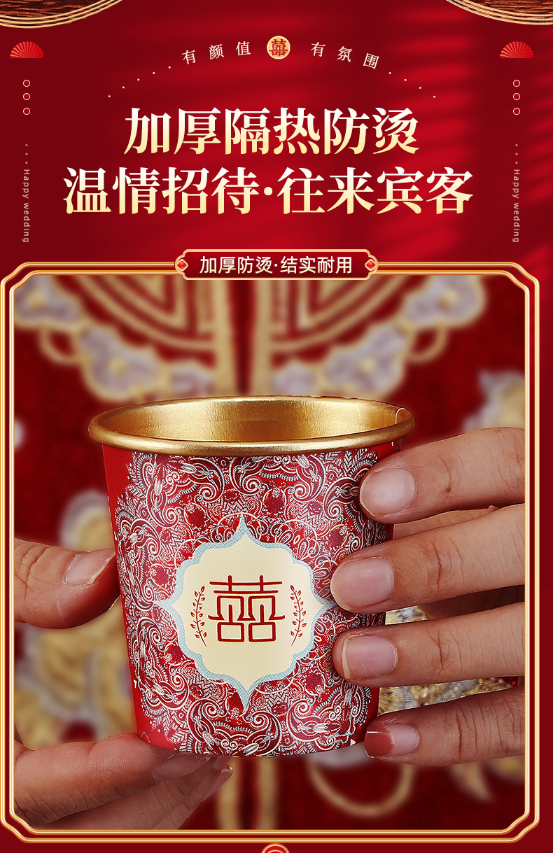 웨딩 페이퍼 컵 일회용 컵 결혼식 두꺼운 웨딩 연회 골드 호일 레드 웨딩 워터 컵 징 헝밍스토어 가기