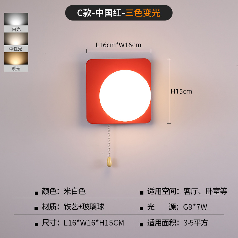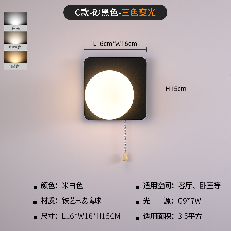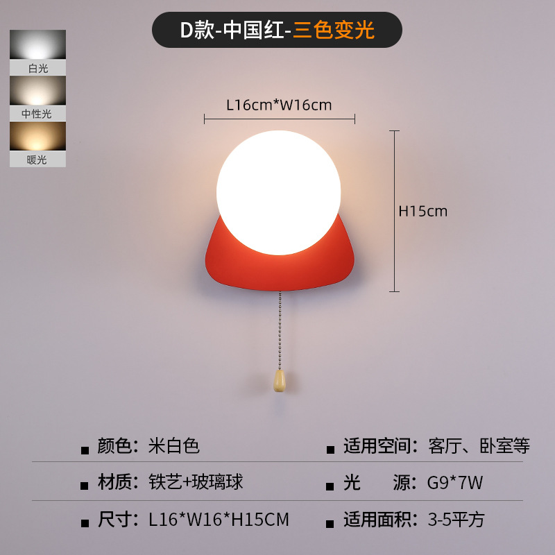 풀 와이어 스위치 침대 옆 벽 램프 침실 어린이 방 멀리 간단한 현대 인터넷 연예인 크림 Ins 스타일 벽 램프스토어 가기