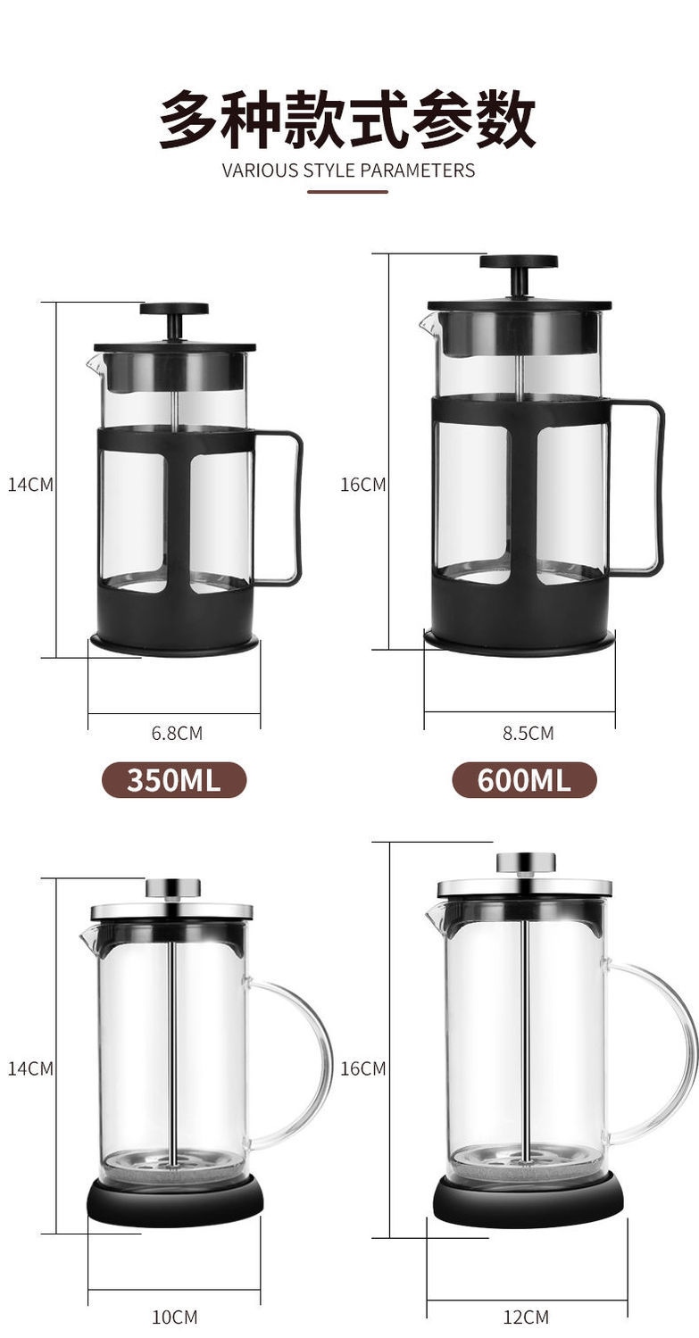 우유 양조 커피 용 프랑스 프레스 냄비 손으로 만든 냄비 가정용 프랑스 필터 프레스 포트 필터 컵 우유 양조 유리 차 교수형스토어 가기