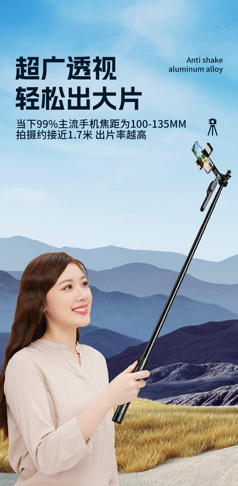 새로운 금속 셀카 스틱 1.7m 삼각대 셀카 스틱 휴대 전화 유니버설 라이브 스탠드 흔들림 방지 안정적인 사진스토어 가기