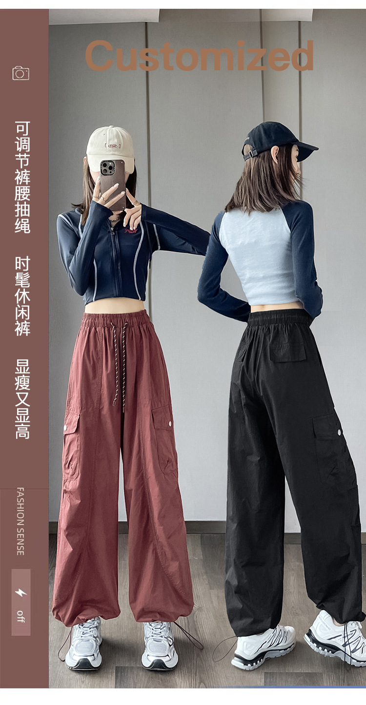 가을 겨울 신상 미국식 속건 작업복 바지 여성용 소형 사이즈 하이웨이스트 스트레이트 레그 조거 등산 스포츠 바지 3738