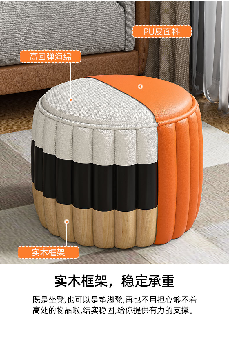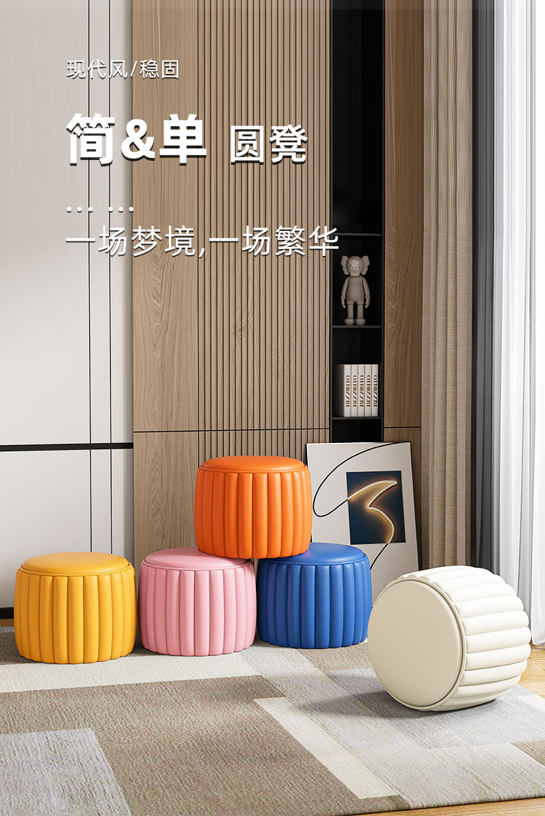 가정용 작은 의자 낮은 의자 그물 빨간 호박 작은 벤치 거실 소파 커피 테이블 의자 둥근 의자 Heng Ming을 변화시키기위한 간단한 의자