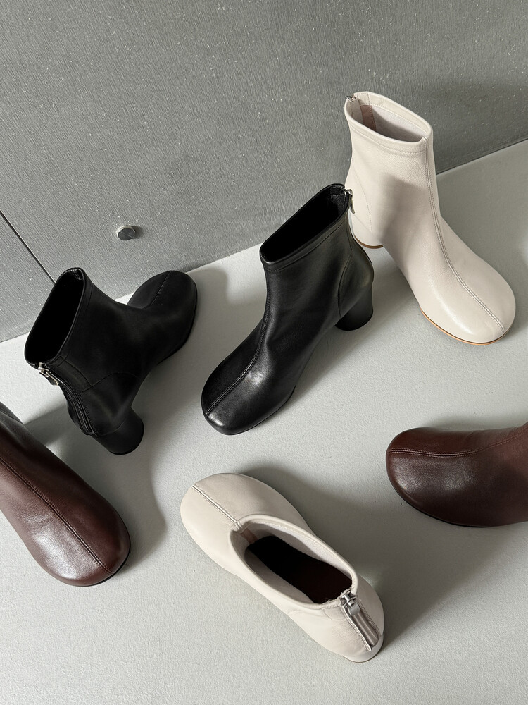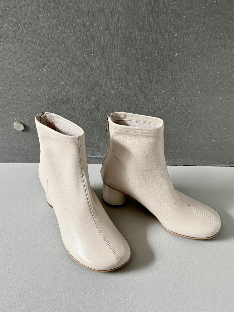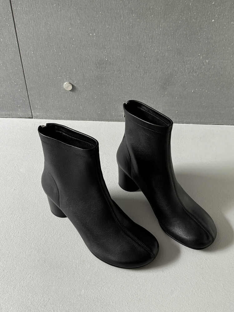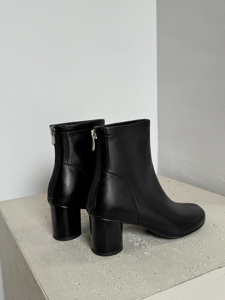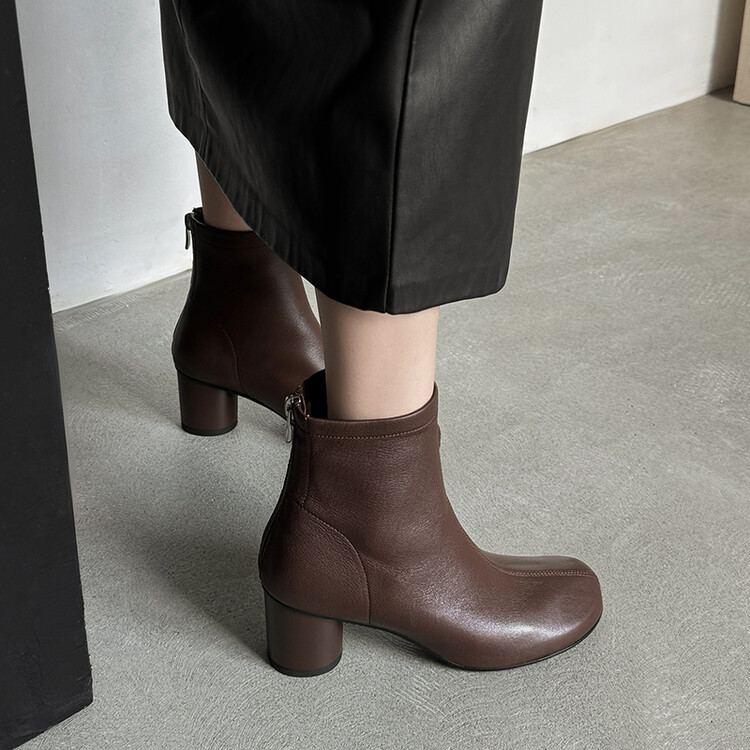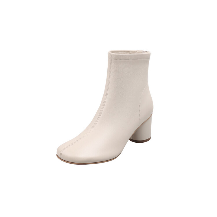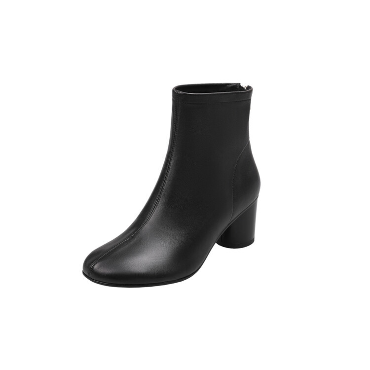 양가죽 한국 스타일 알몸 부츠 여성 짧은 부츠 가을 새 라운드 발가락 단색 두꺼운 힐 하이힐 지퍼 작은 짧은 부츠 싱글 부츠