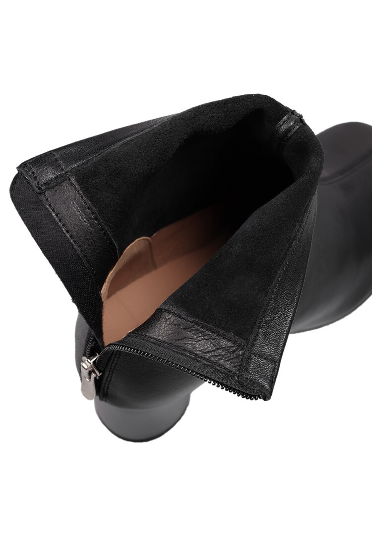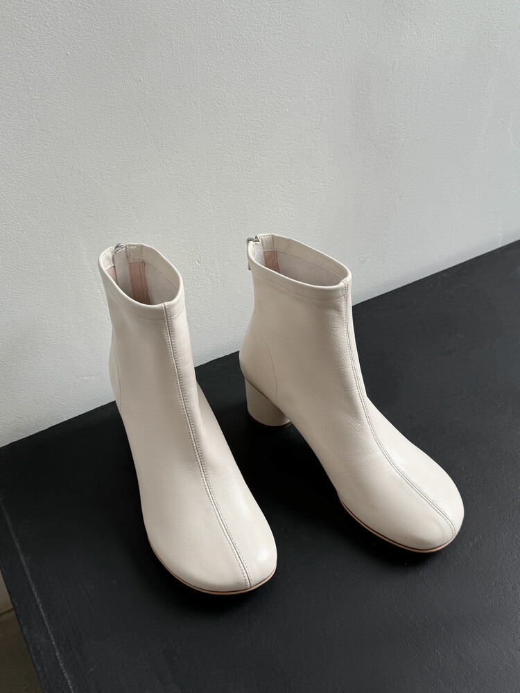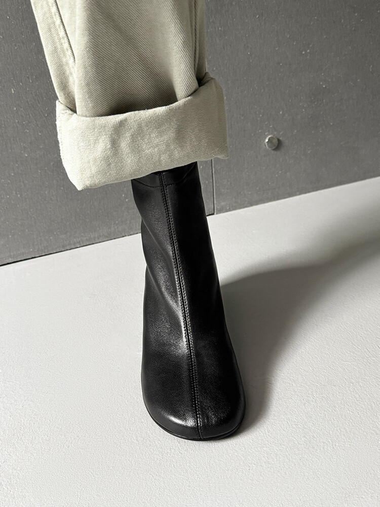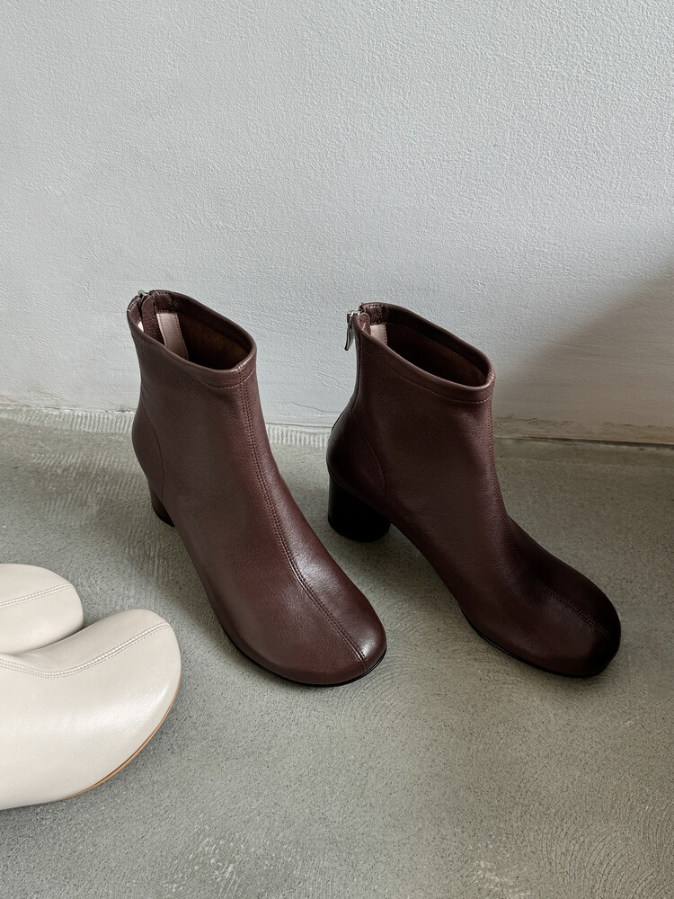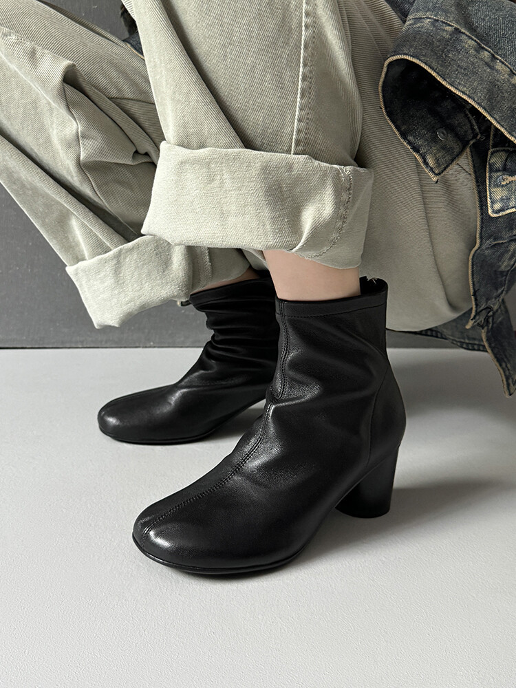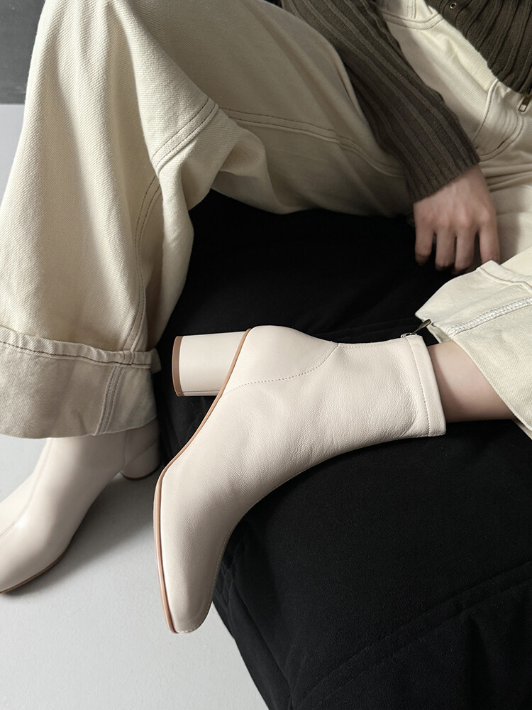 양가죽 한국 스타일 알몸 부츠 여성 짧은 부츠 가을 새 라운드 발가락 단색 두꺼운 힐 하이힐 지퍼 작은 짧은 부츠 싱글 부츠