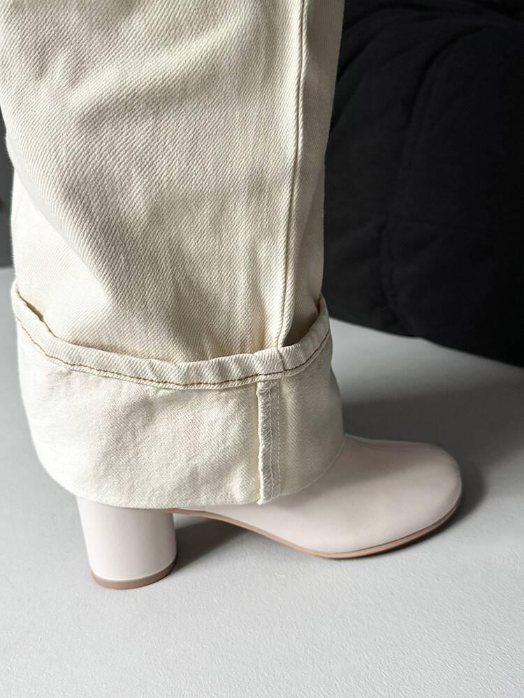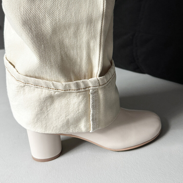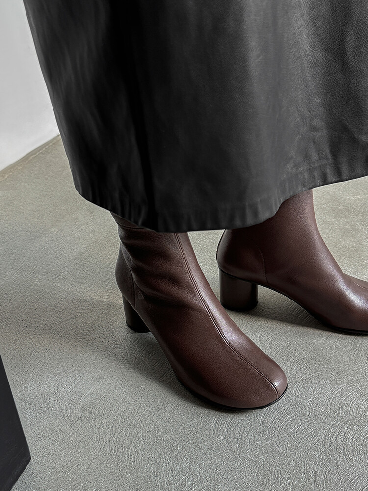 양가죽 한국 스타일 알몸 부츠 여성 짧은 부츠 가을 새 라운드 발가락 단색 두꺼운 힐 하이힐 지퍼 작은 짧은 부츠 싱글 부츠스토어 가기