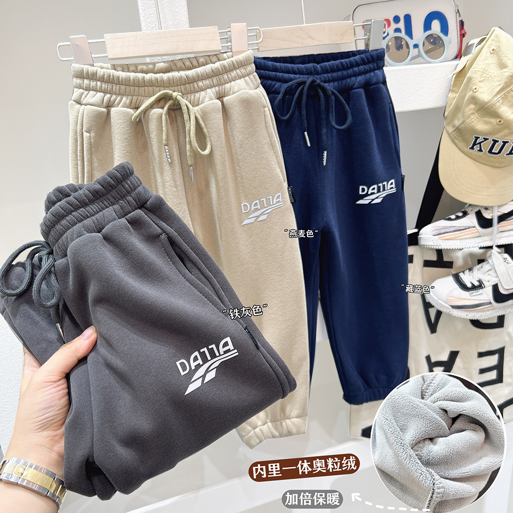 소년 겨울 바지 2024 새로운 도착 겨울 소년 캐주얼 바지 기모 스웨트 팬츠 유행 어린이 스포츠 바지스토어 가기