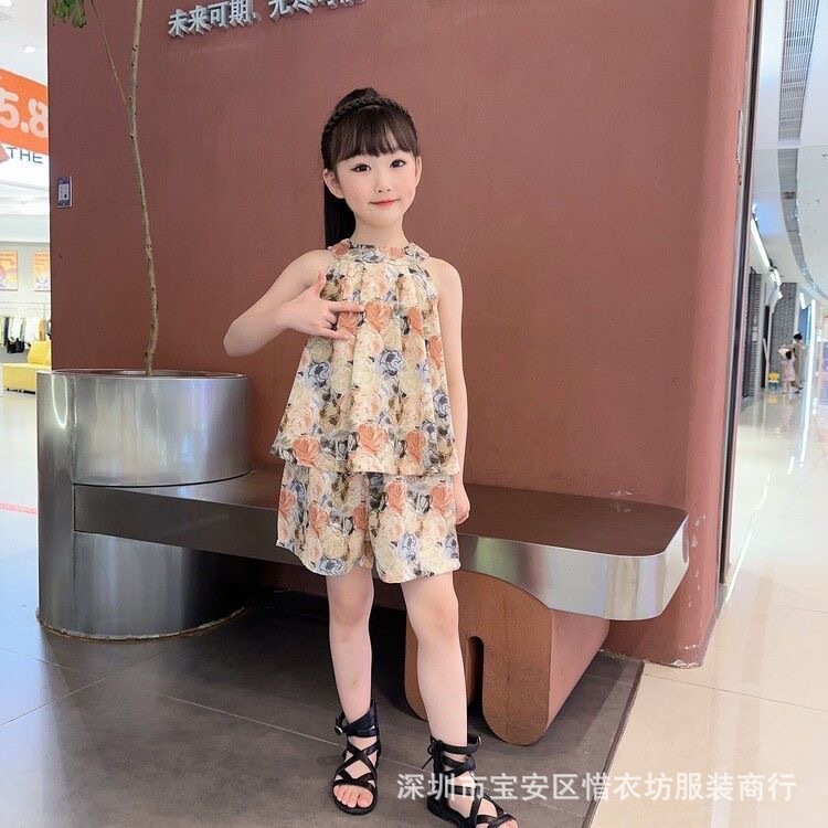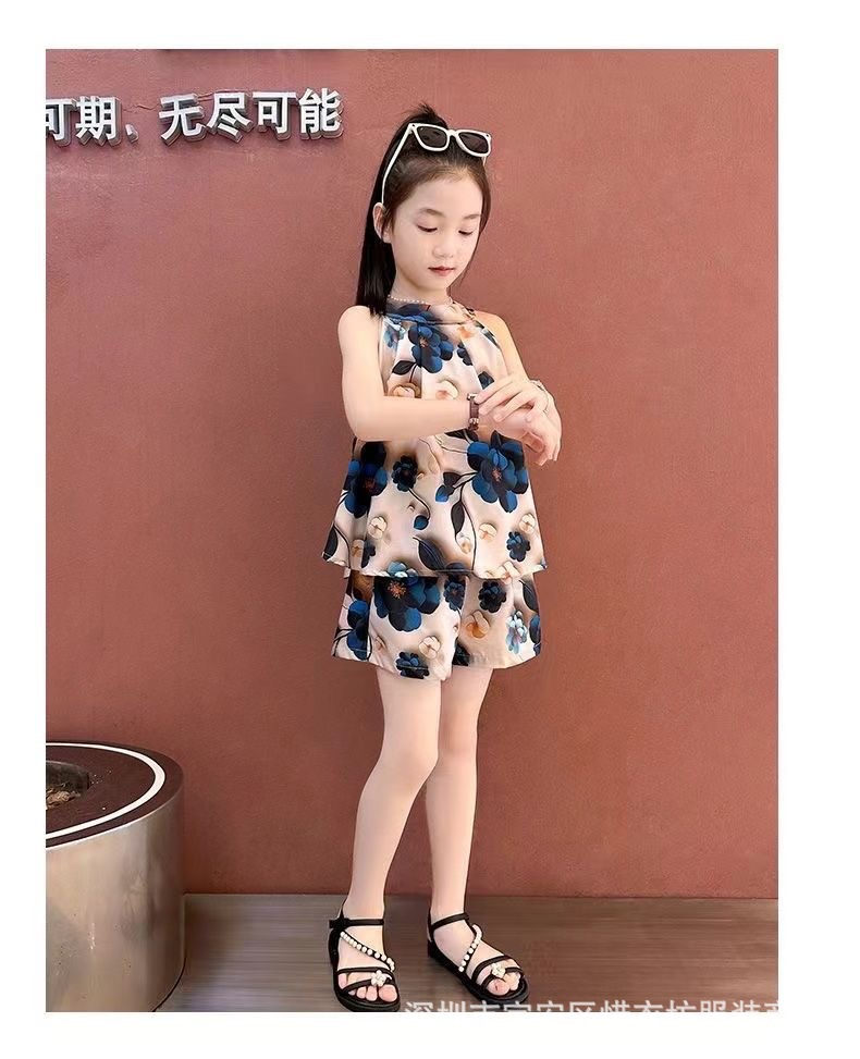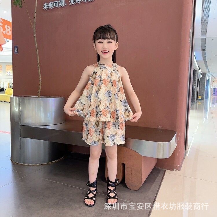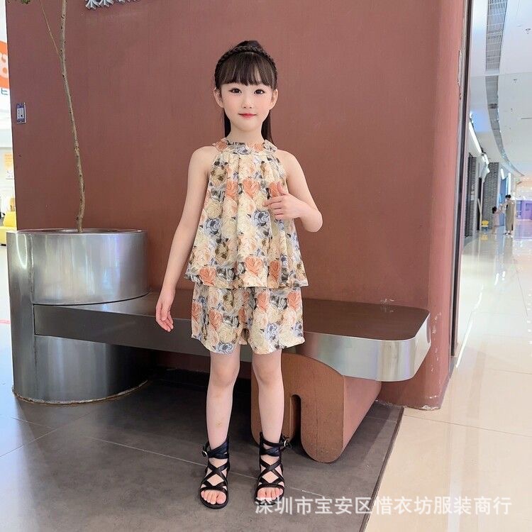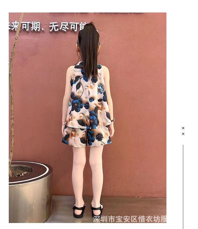 여자 민족 스타일 여름 새로운 2025 여자 민소매 세트 아이들 여자 서양식 얇은 쉬폰 아이들스토어 가기