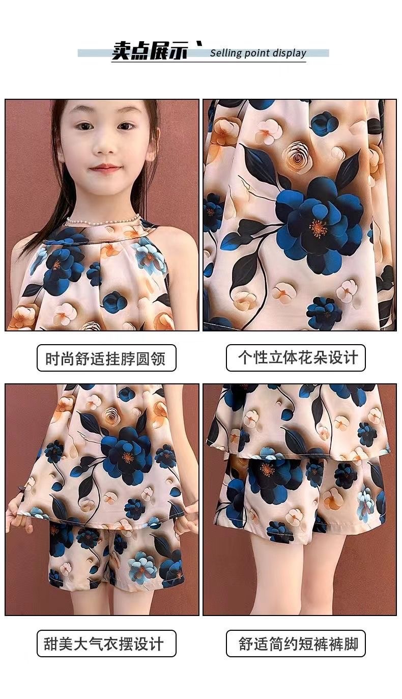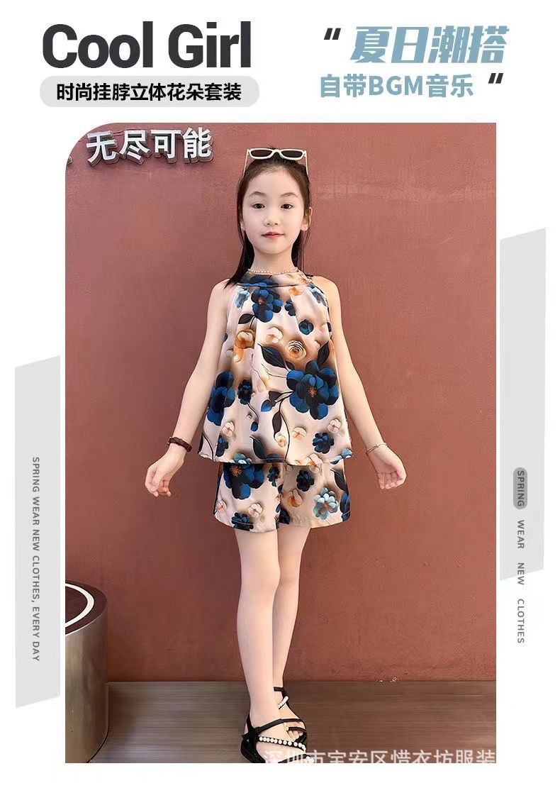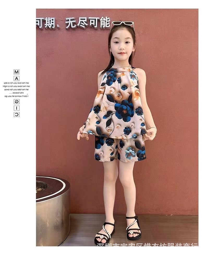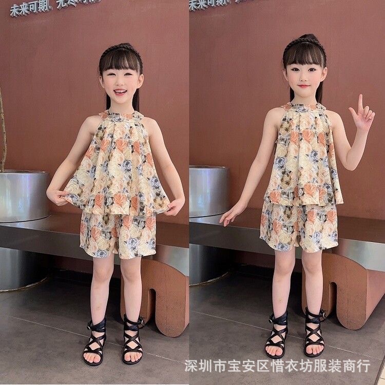 여자 민족 스타일 여름 새로운 2025 여자 민소매 세트 아이들 여자 서양식 얇은 쉬폰 아이들스토어 가기