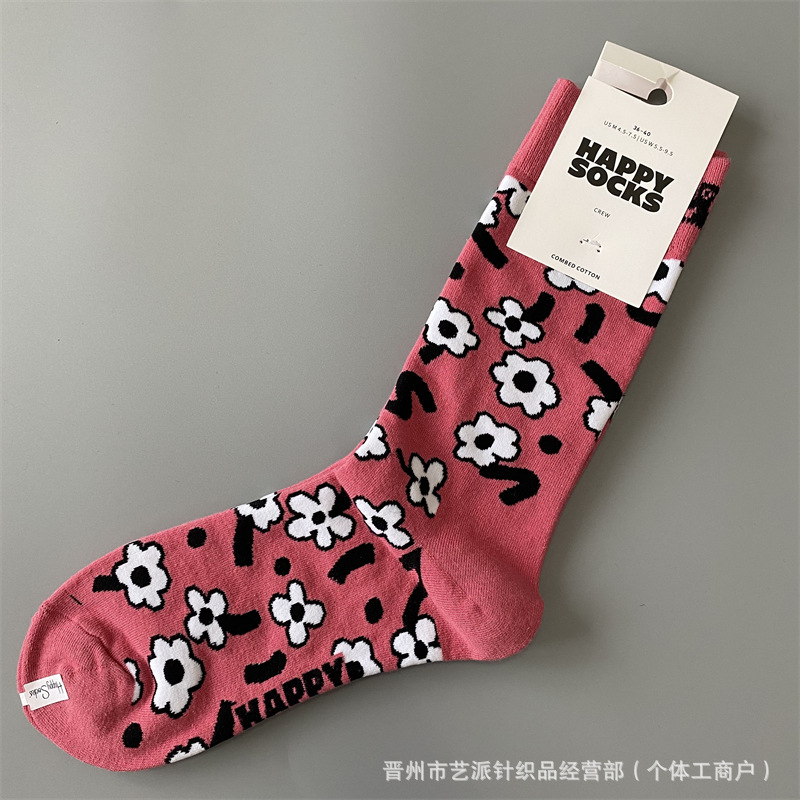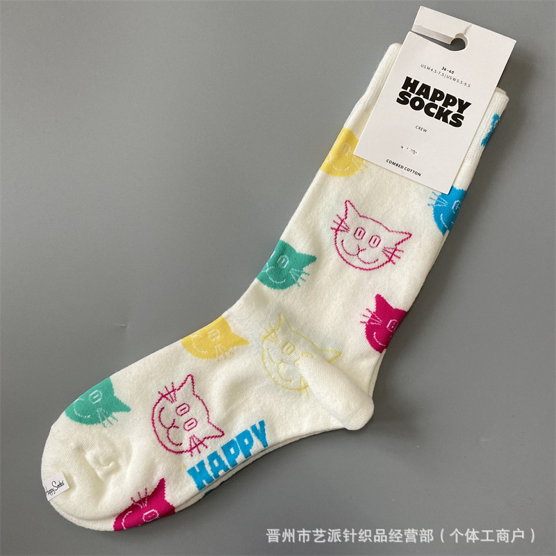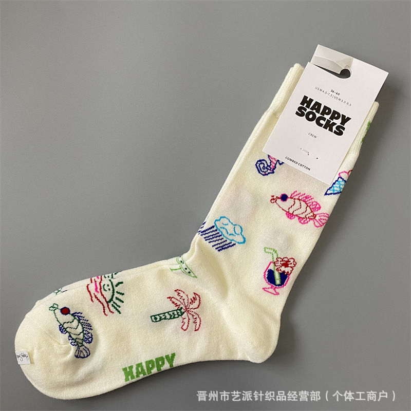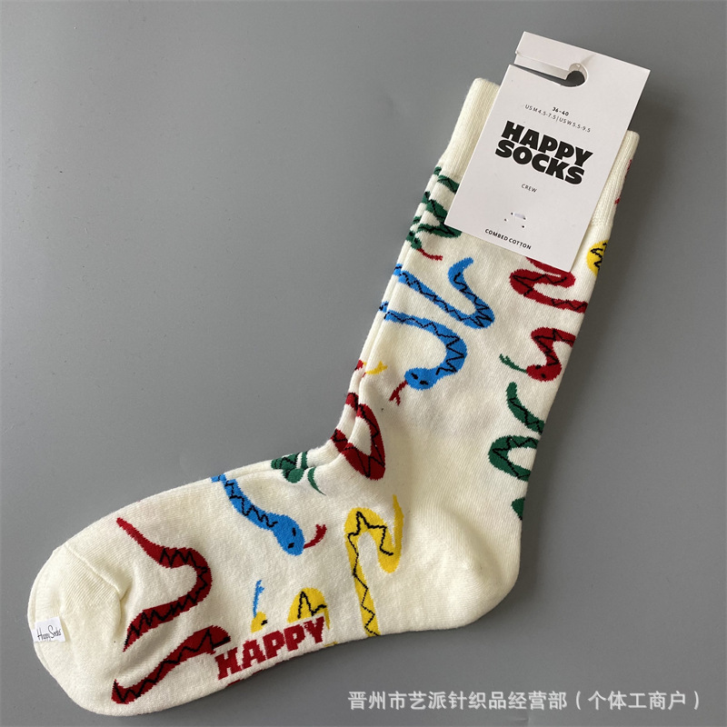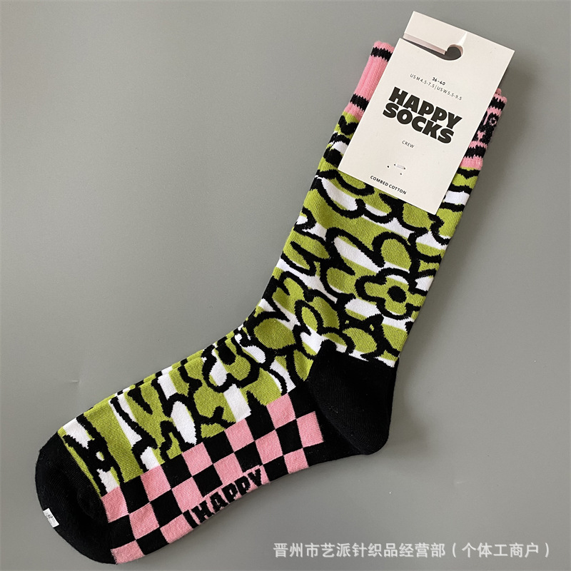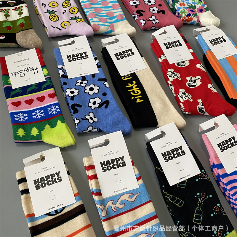 2024 폭발 새로운 HappySocks 컬러 양말 어린이 봄과 가을 Ins 트렌디 인터넷 인기 유행 양말 Z스토어 가기