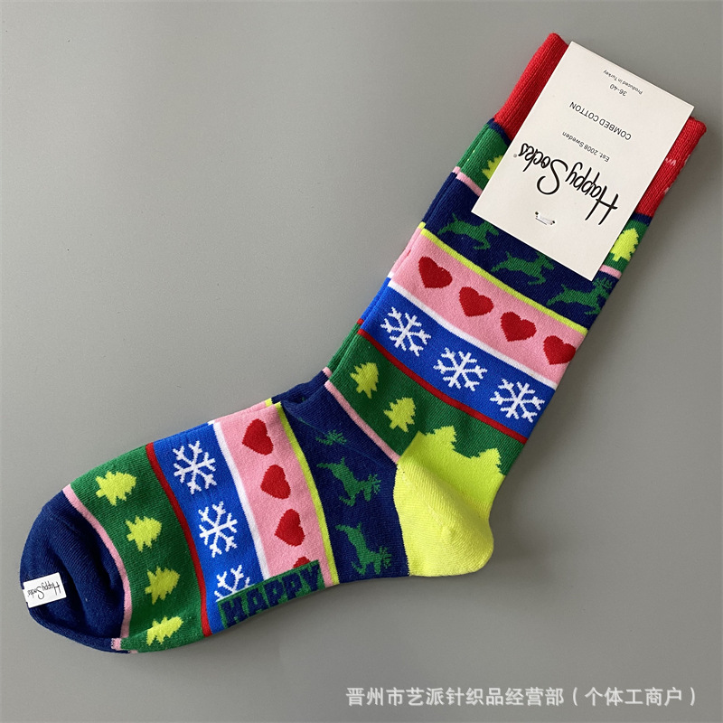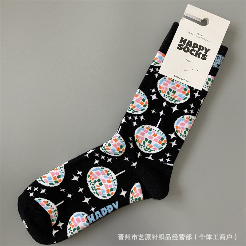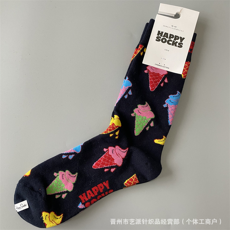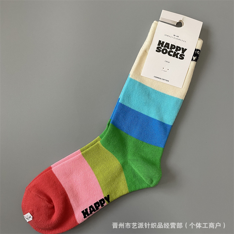 2024 폭발 새로운 HappySocks 컬러 양말 어린이 봄과 가을 Ins 트렌디 인터넷 인기 유행 양말 Z