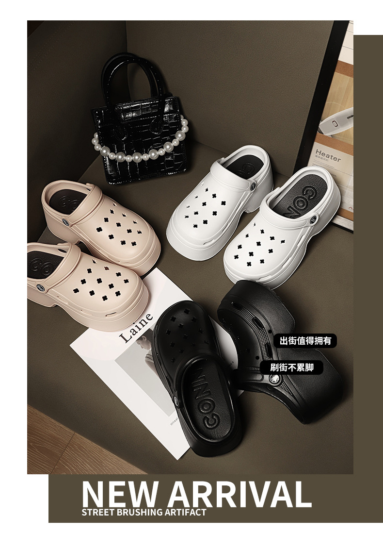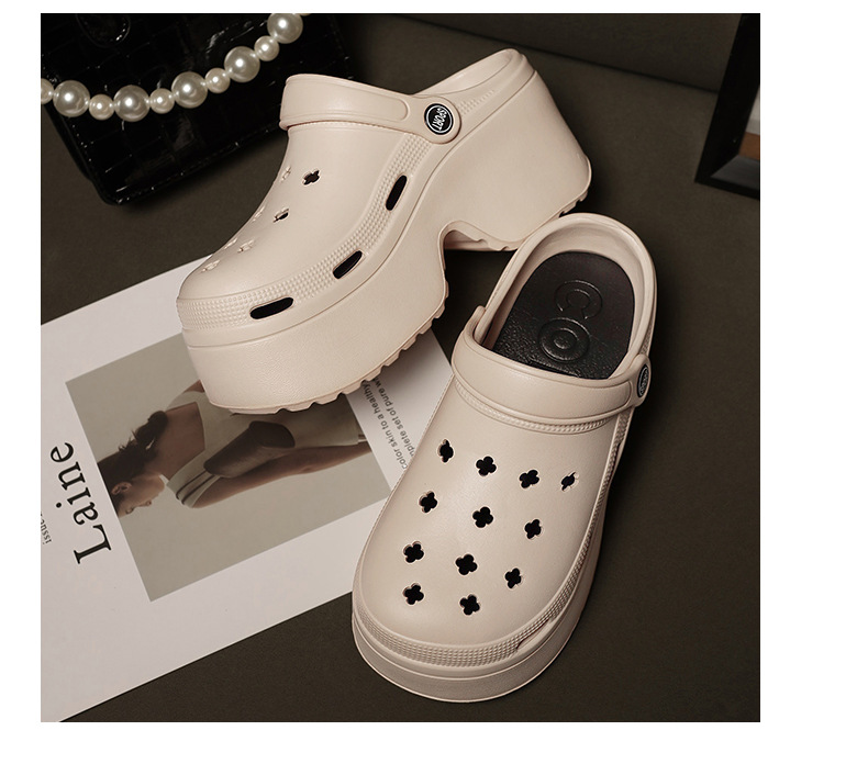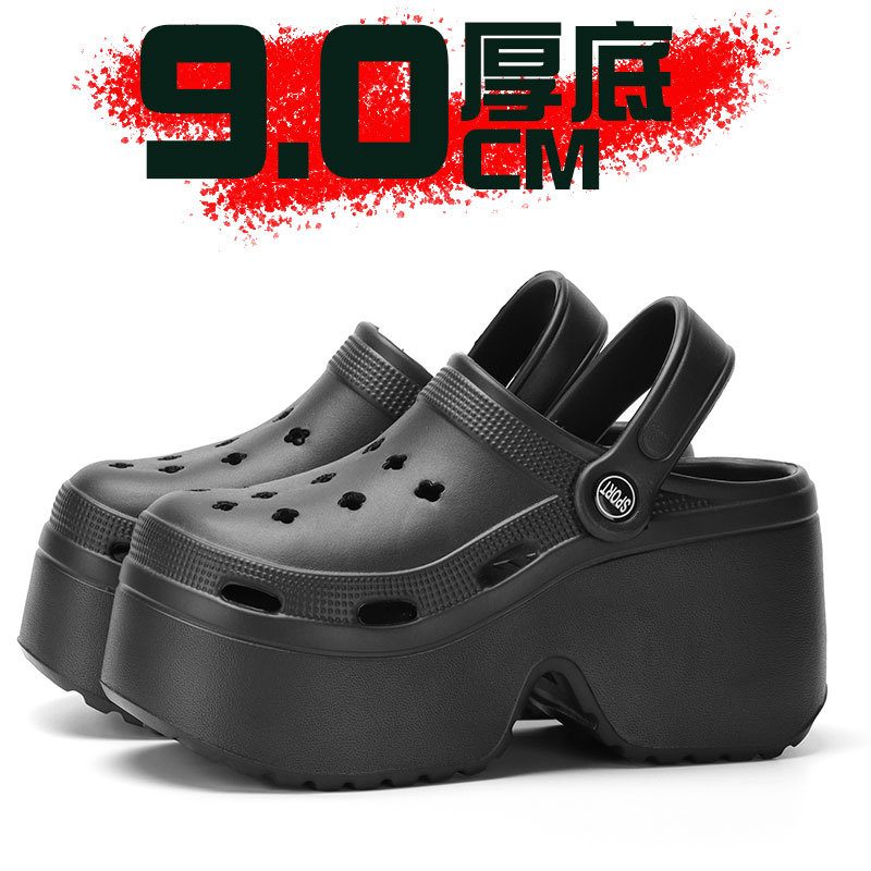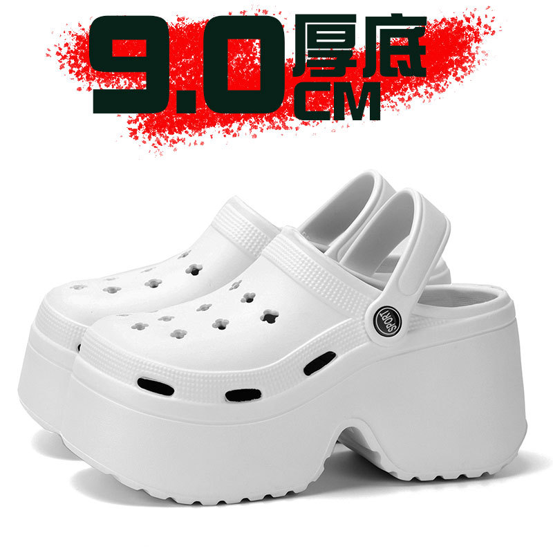 9CM 두꺼운 단독 구멍 신발 여성 여름 겉옷 강화 비치 신발 Diy 샌들 인스타그램 스타일 슬리퍼 여성용 슬리퍼스토어 가기